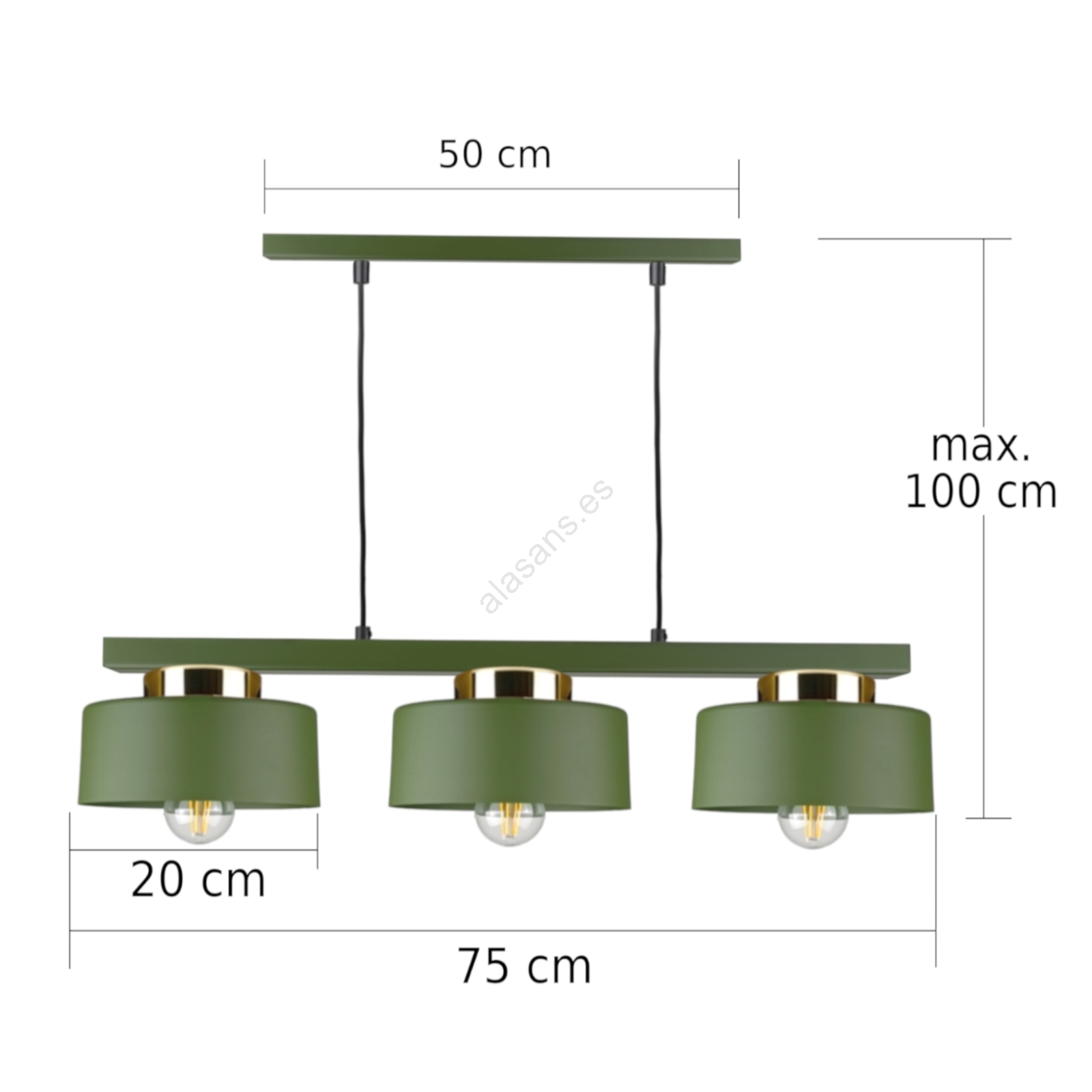 El diseño bonito y funcional caracteriza a Lámpara colgante IGNIA con cable 3xE27/60W/230V verde/dorado.  Una bombilla con casquillo E27 es adecuada para la lámpara. Aquí, puedes comprar otras bombillas a precios ventajosos. Será una adición interesante para tu hogar.