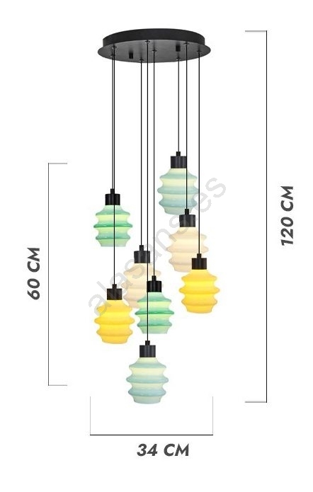 Lámpara colgante LED de cable CACTUS 8xLED/2,8W/230V 3000K verde/amarillo/blanco