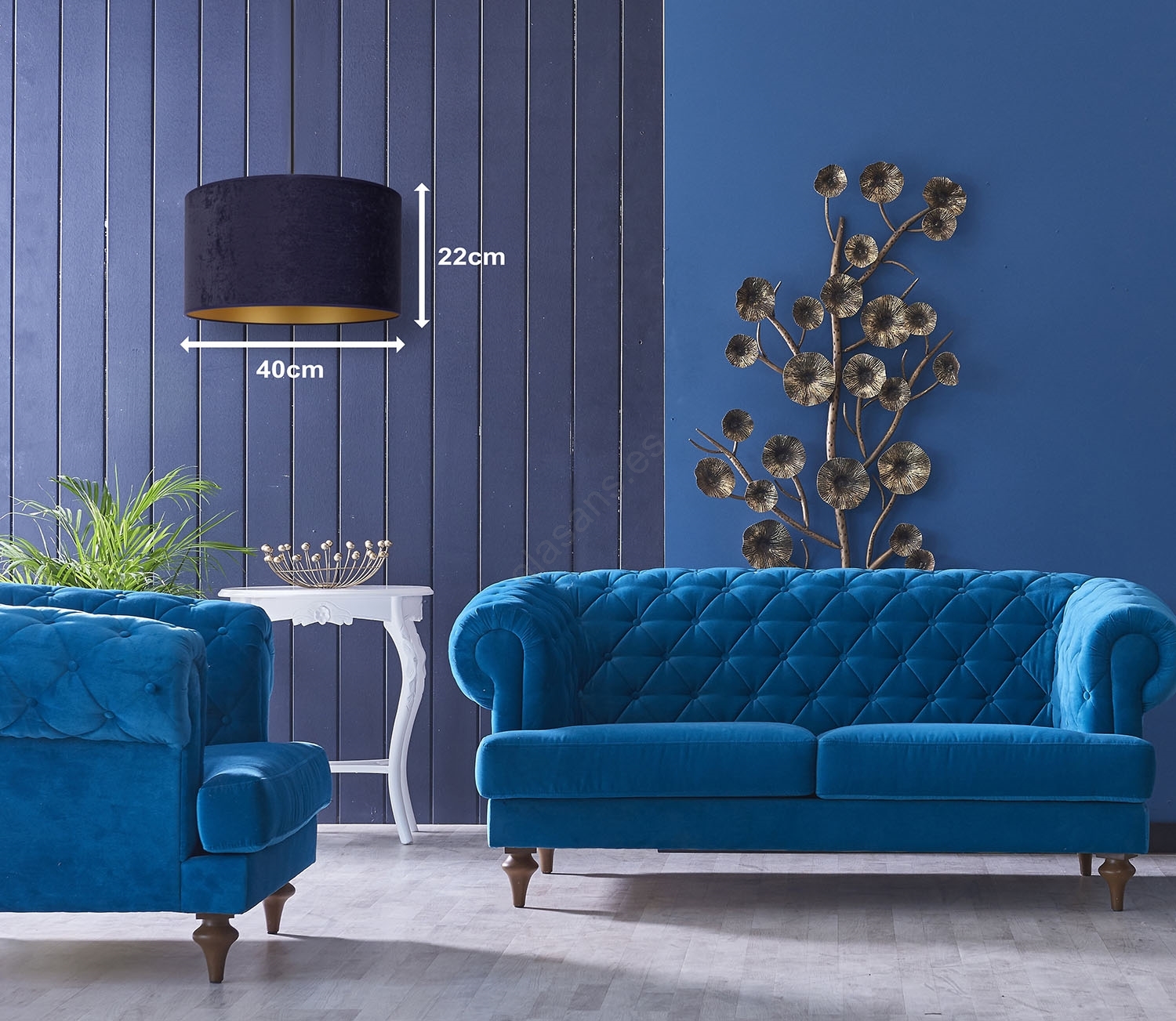 El diseño bonito y funcional caracteriza a Duolla - Lámpara colgante ROLLER 1xE27/15W/230V diá. 40 cm azul/dorado.  Una bombilla con casquillo E27 es adecuada para la lámpara. Aquí, puedes comprar otras bombillas a precios ventajosos. Será una adición interesante para tu hogar.