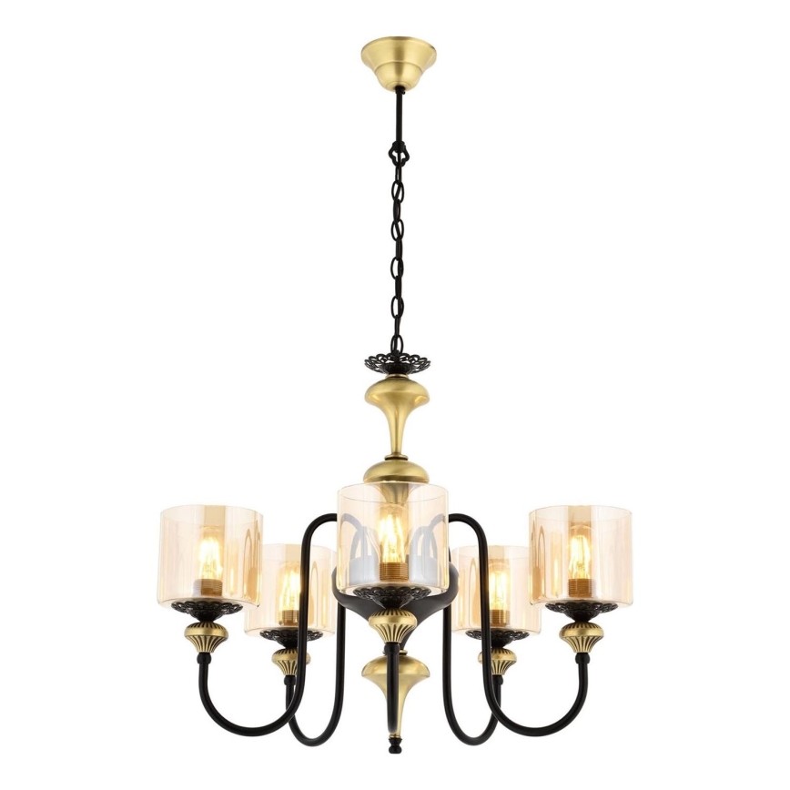 Lámpara de araña con cadena BUSAN, 5 portalámparas E27, máx. 40 W, 230 V, acabado dorado