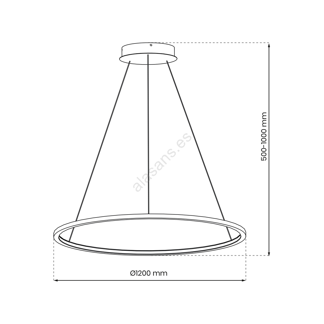 • Lámpara colgante LED SATURNO, suspendida por cable, LED/65W/230V, Ø 120 cm, IP44, negra