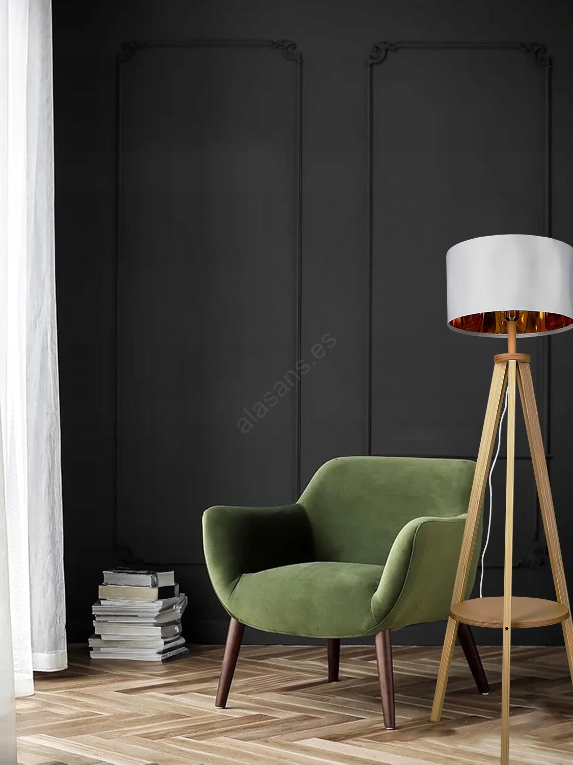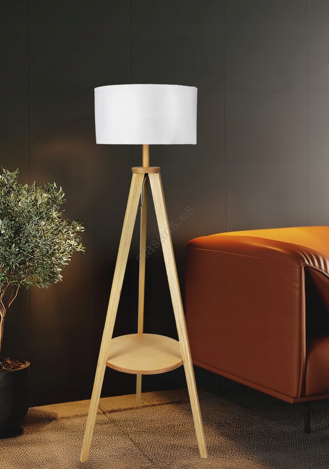 Espacios, Iluminación interior, Lámparas, Lámparas con mesita, Lámparas de mesa/de pie, Lámparas de pie, Lámparas de pie de madera, Salón y dormitorio