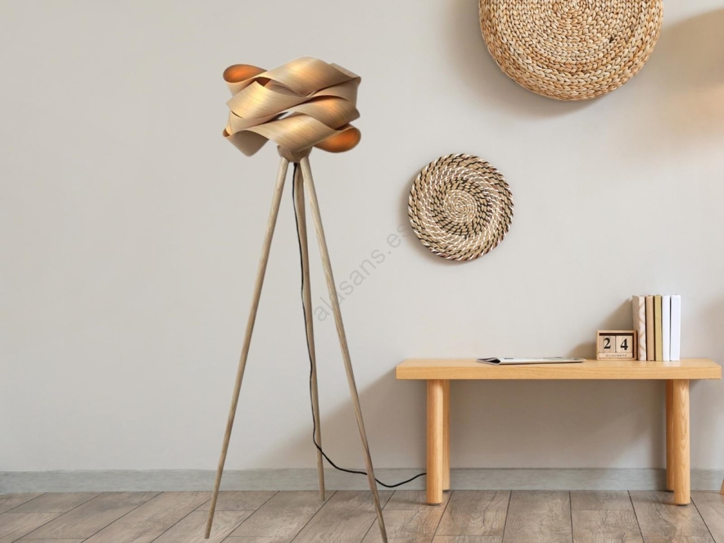 Lámpara de pie de madera 1xE27/60W/230V madera maciza/chapa/fresno