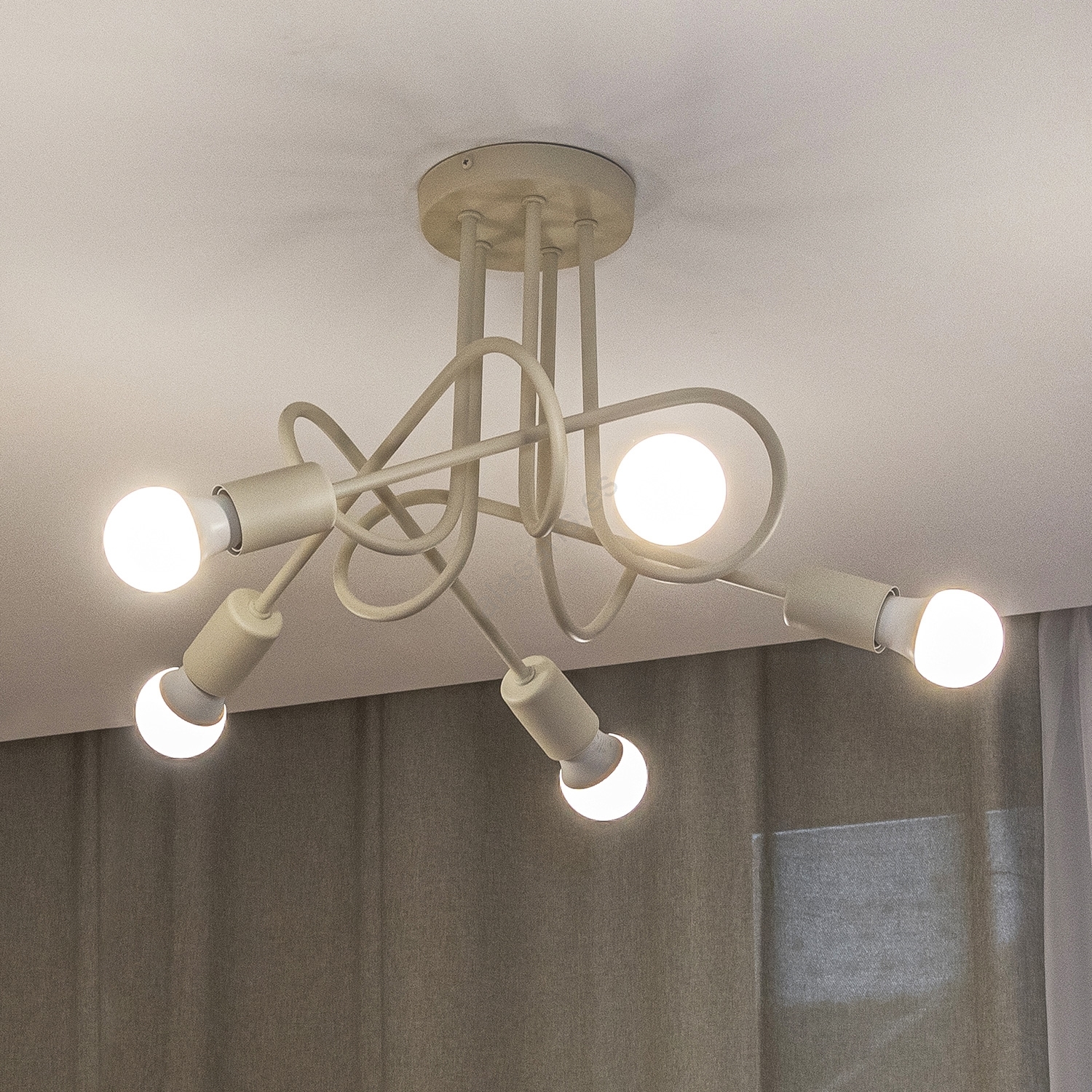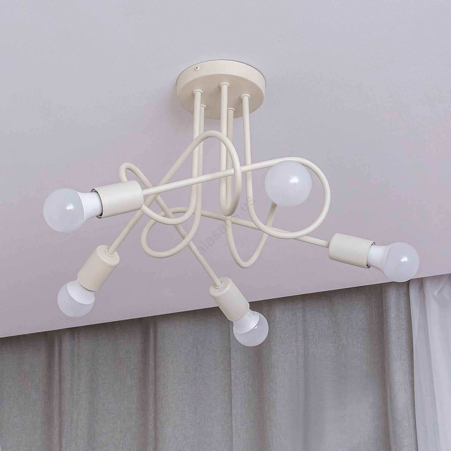El diseño bonito y funcional caracteriza a Lámpara de techo de montaje en superficie OXFORD 5xE27/15W/230V color crema.  Una bombilla con casquillo E27 es adecuada para la lámpara. Aquí, puedes comprar otras bombillas a precios ventajosos. Será una adición interesante para tu hogar.