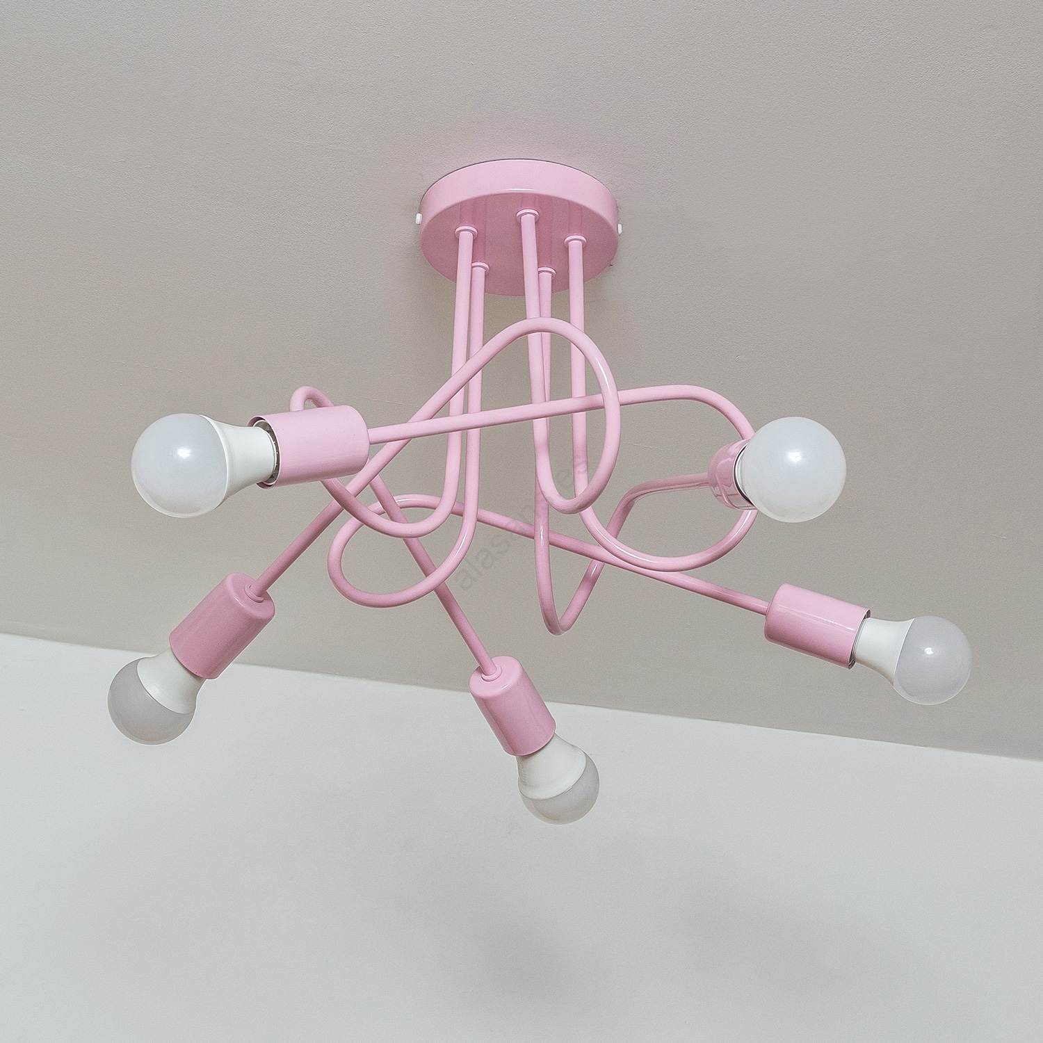 El diseño bonito y funcional caracteriza a Lámpara de techo de montaje en superficie OXFORD 5xE27/15W/230V, rosa.  Una bombilla con casquillo E27 es adecuada para la lámpara. Aquí, puedes comprar otras bombillas a precios ventajosos. Será una adición interesante para tu hogar.