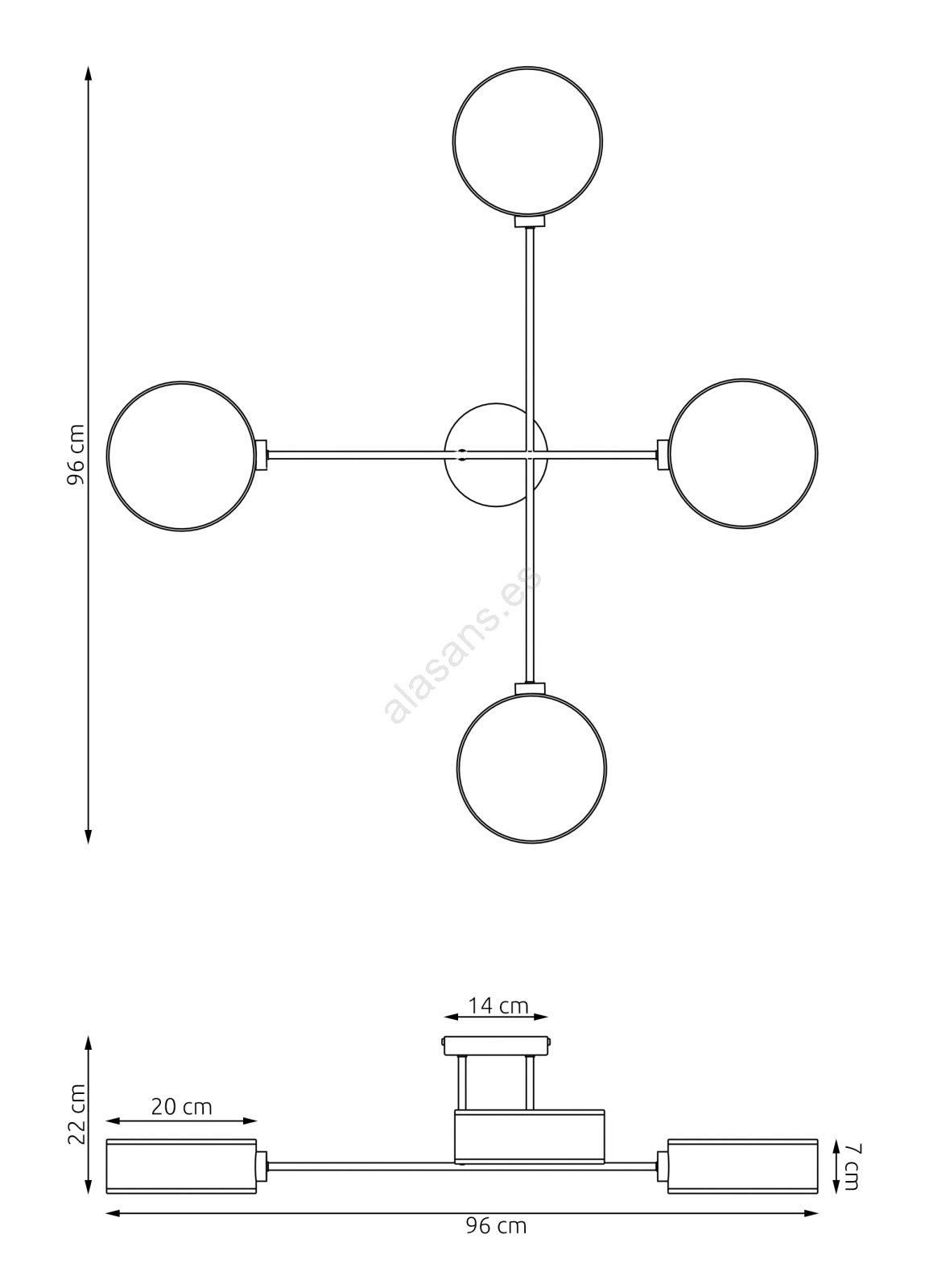 • Lámpara de techo MAGA 4xE14/10W/230V negra