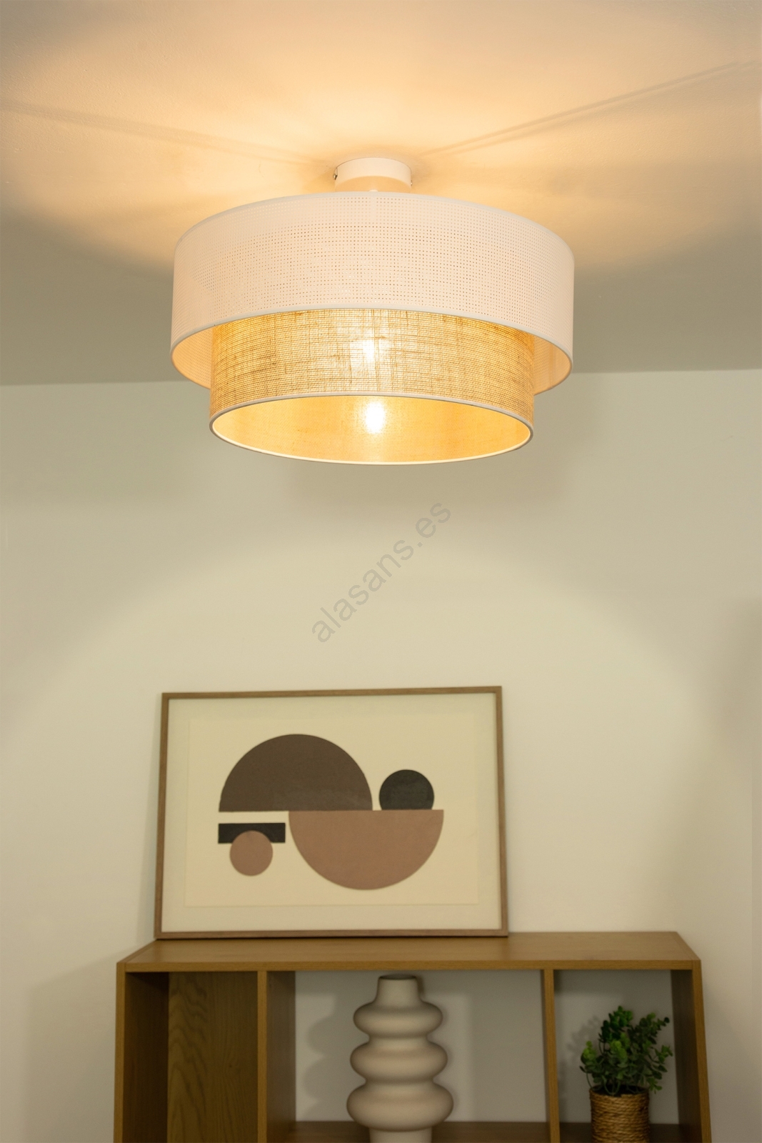 • Lámpara de techo de superficie BORHO 1xE27/60W/230V Ø 40 cm blanco/yute