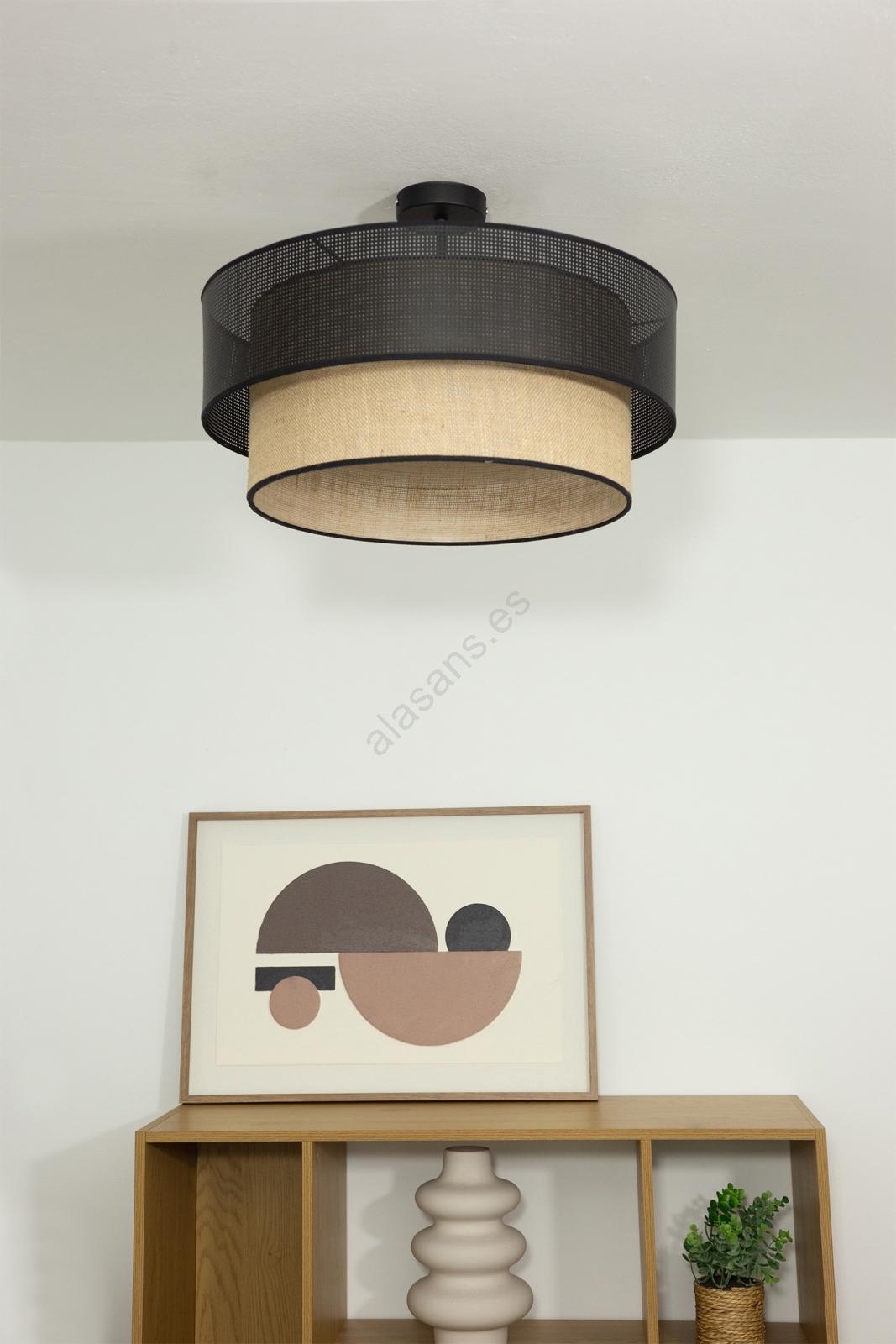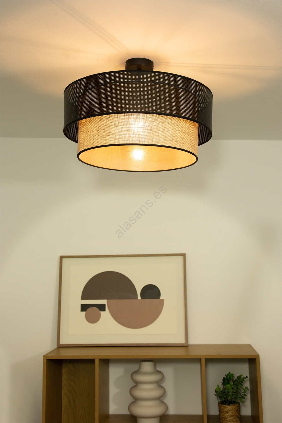 • Lámpara de techo de superficie BORHO 1xE27/60W/230V Ø 40 cm blanco/yute