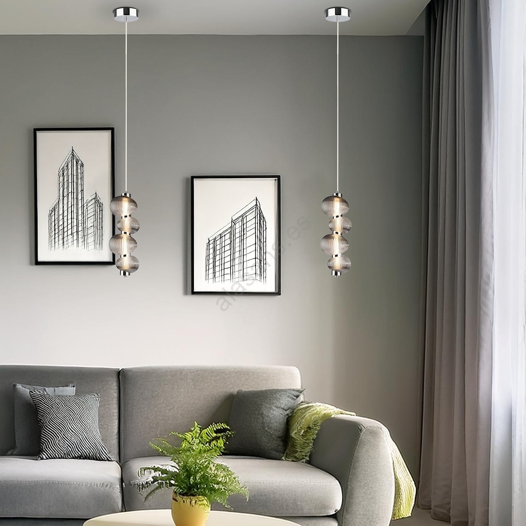 • Lámpara colgante LED con cable BOLLA LED/17W/230V Ø 16 cm cromo brillante/gris ahumado