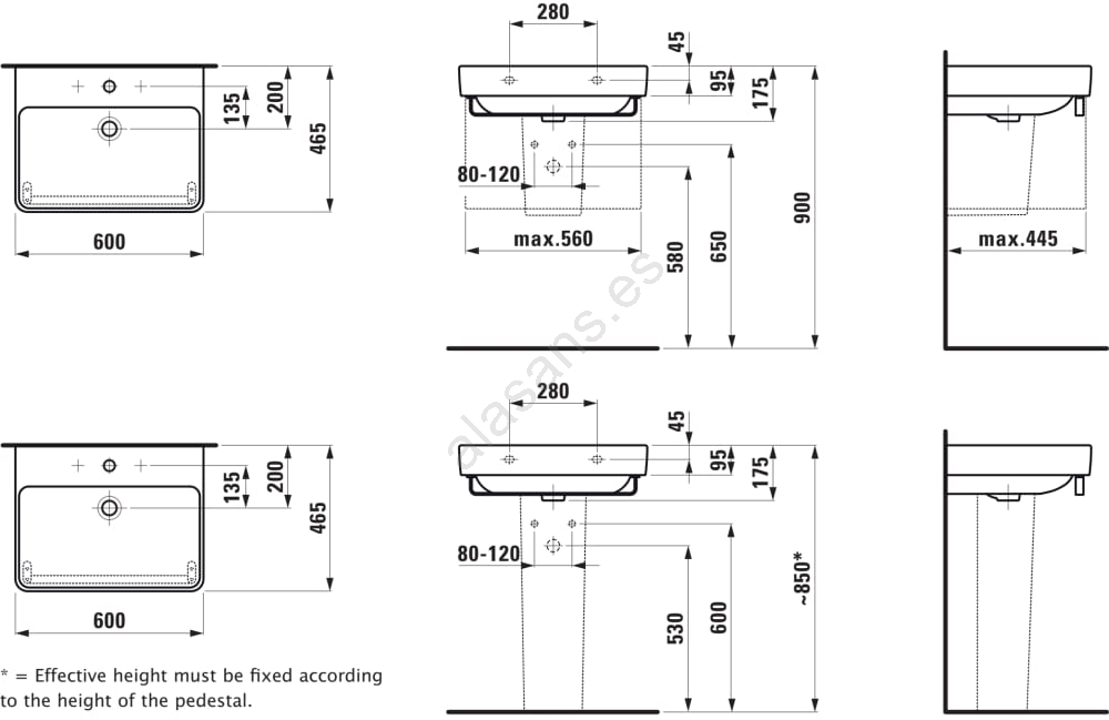• El lavabo está diseñado para instalarse sobre encimera o como lavabo mural suspendido.