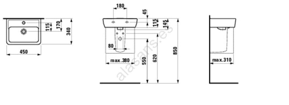 • El paquete incluye el lavabo sin sifón ni grifo.