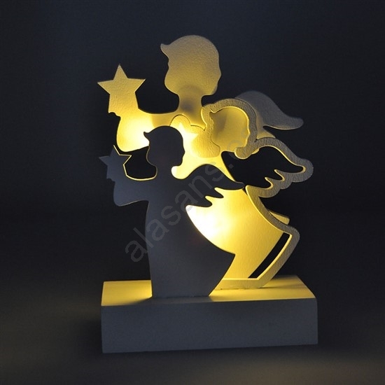 • Decoración navideña de madera con ángeles LED.