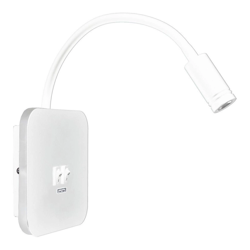 Lámpara LED de pared flexible con USB BASE LED/8W + LED/2W/230V blanca