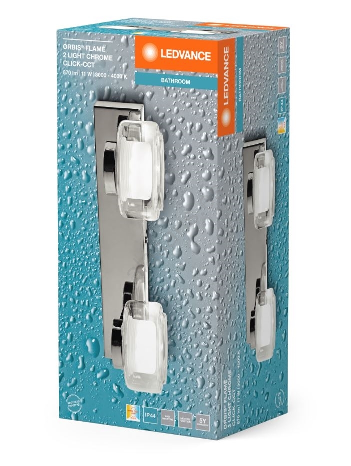 • Ledvance - Aplique LED de baño ORBIS FLAME 2xLED/5,5W/230V 3000/4000K IP44 cromo