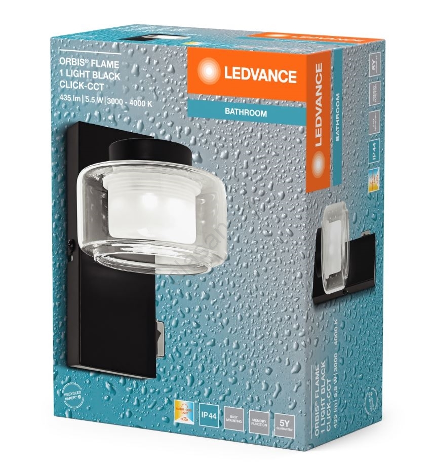 • Ledvance - Aplique LED de baño ORBIS FLAME LED/5,5W/230V 3000/4000K IP44 negro