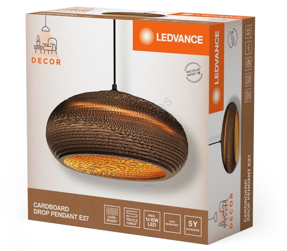 El diseño bonito y funcional caracteriza a Ledvance - Lámpara colgante DECOR CARDBOARD 1xE27/15W/230V diá. 40 cm.  Una bombilla con casquillo E27 es adecuada para la lámpara. Aquí, puedes comprar otras bombillas a precios ventajosos. Será una adición interesante para tu hogar.