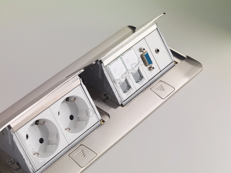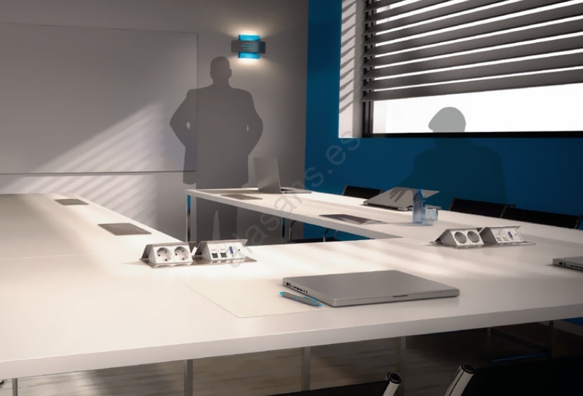 • Caja de enchufe empotrada para la superficie de la mesa.