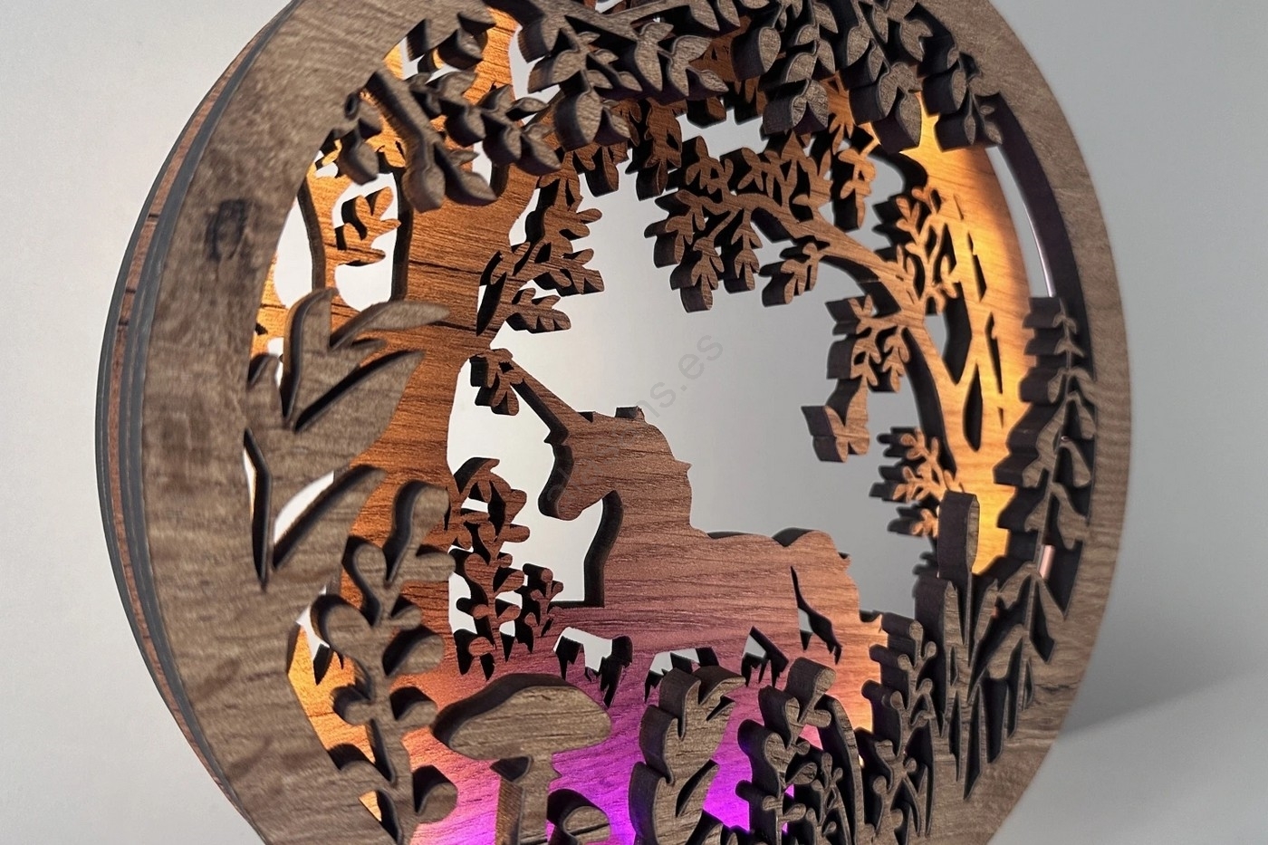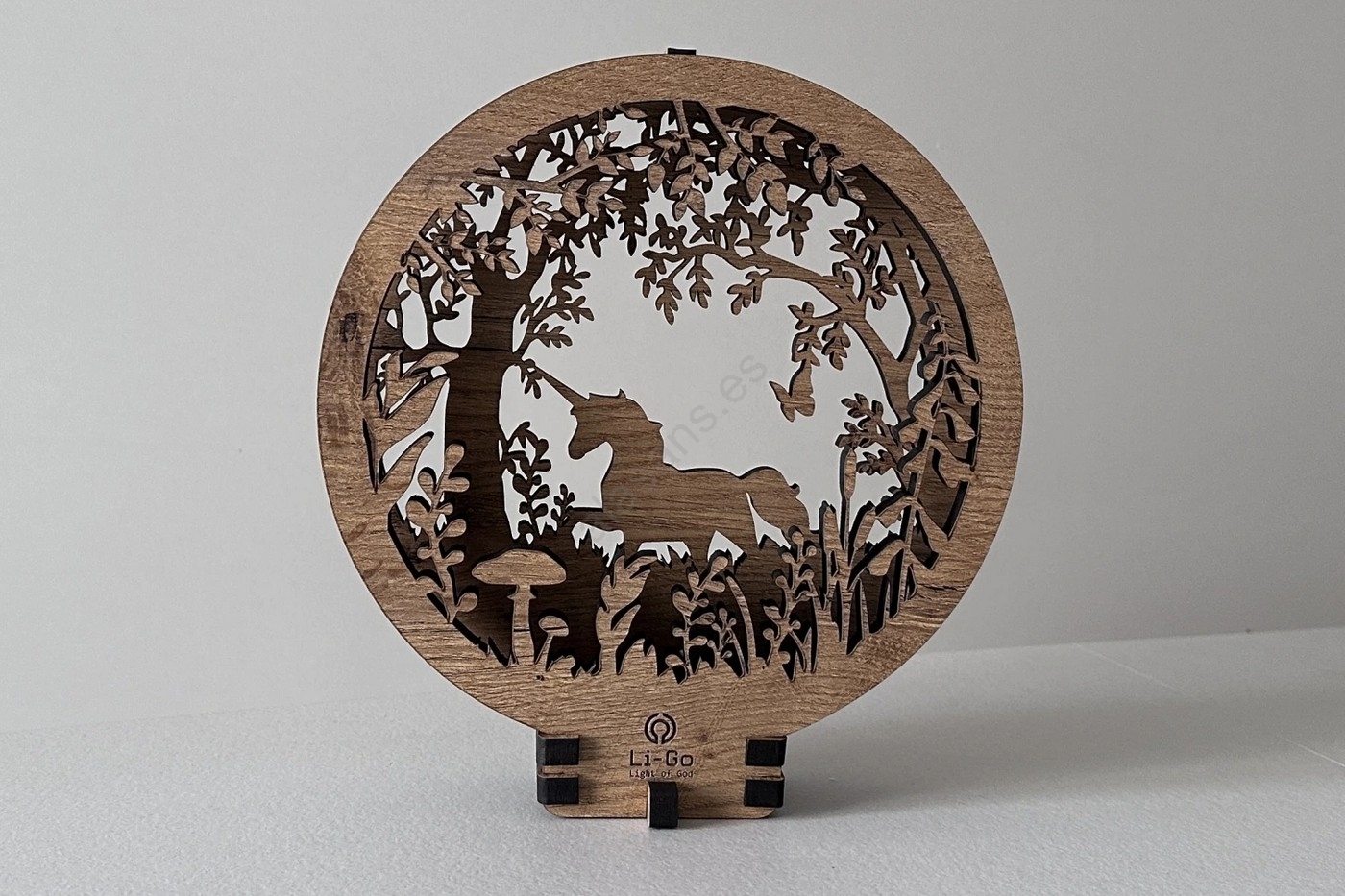 Li-Go 23568/DUB2 - Decoración de sobremesa LED regulable LED/12W/230V 20x22 cm roble/Unicornio