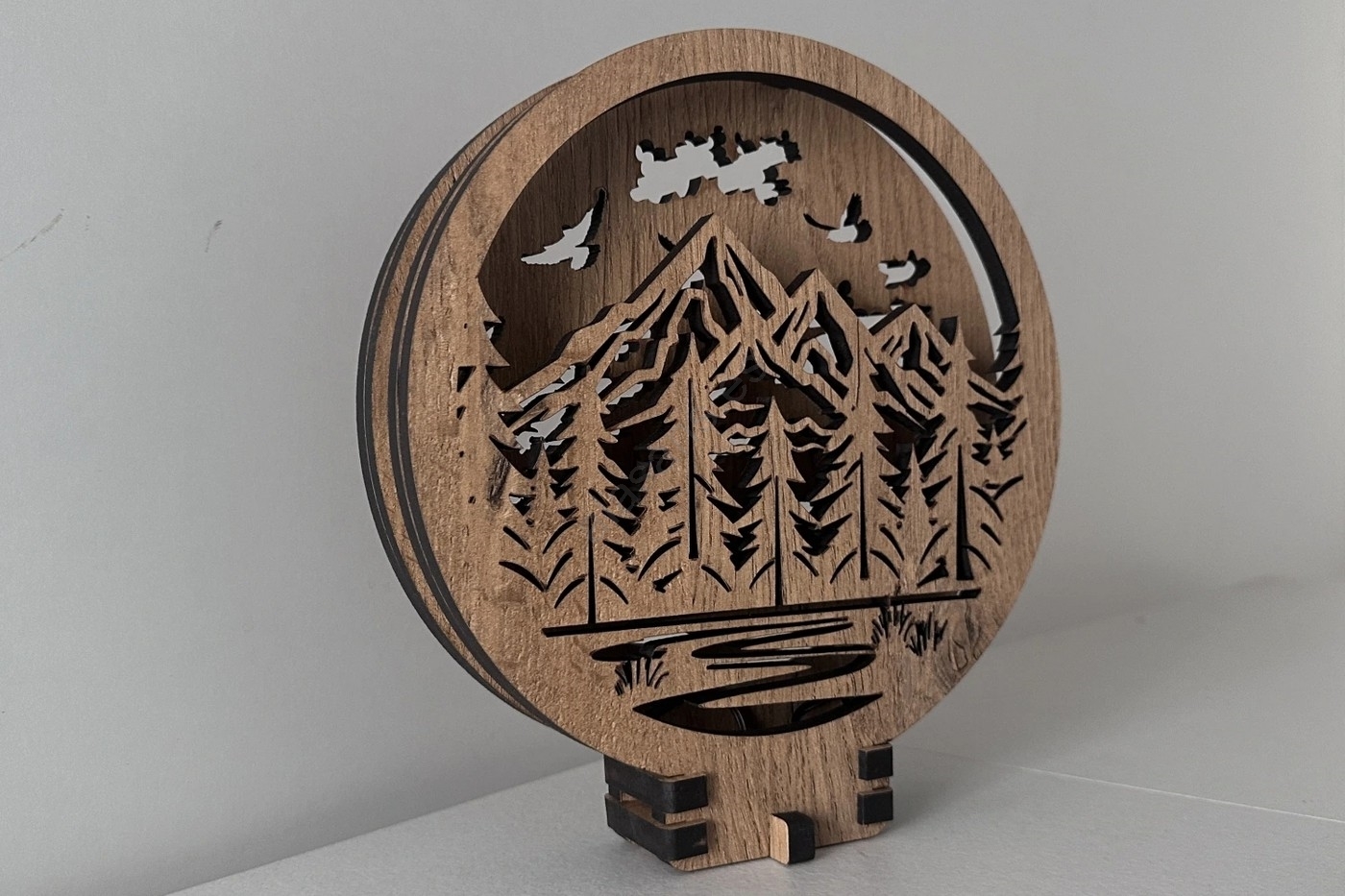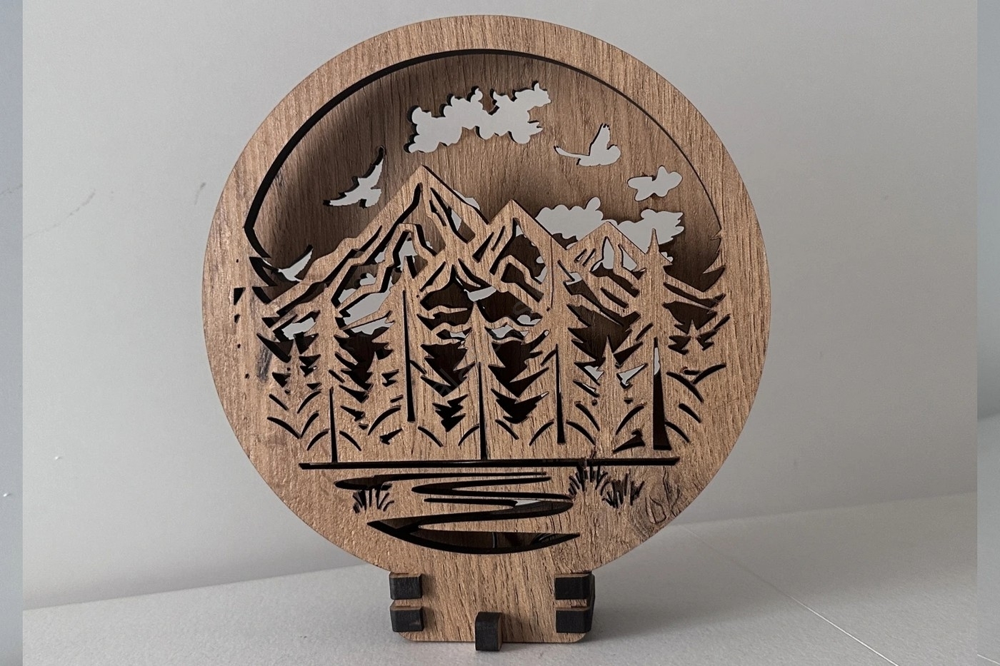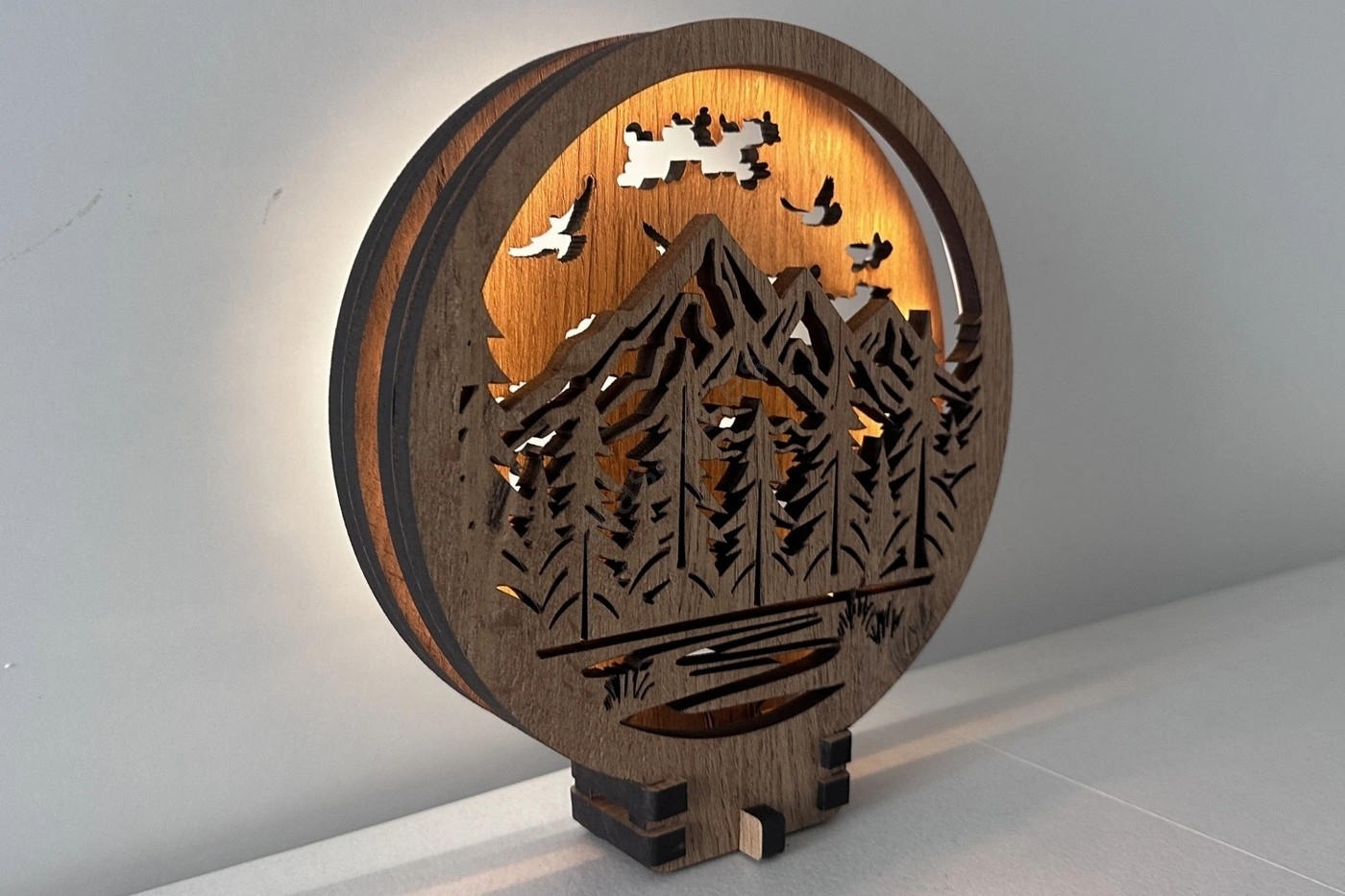 Li-Go 23583/DUB2 - Lámpara decorativa de mesa LED regulable/12W/230V 20x22 cm roble/Montañas y bosque