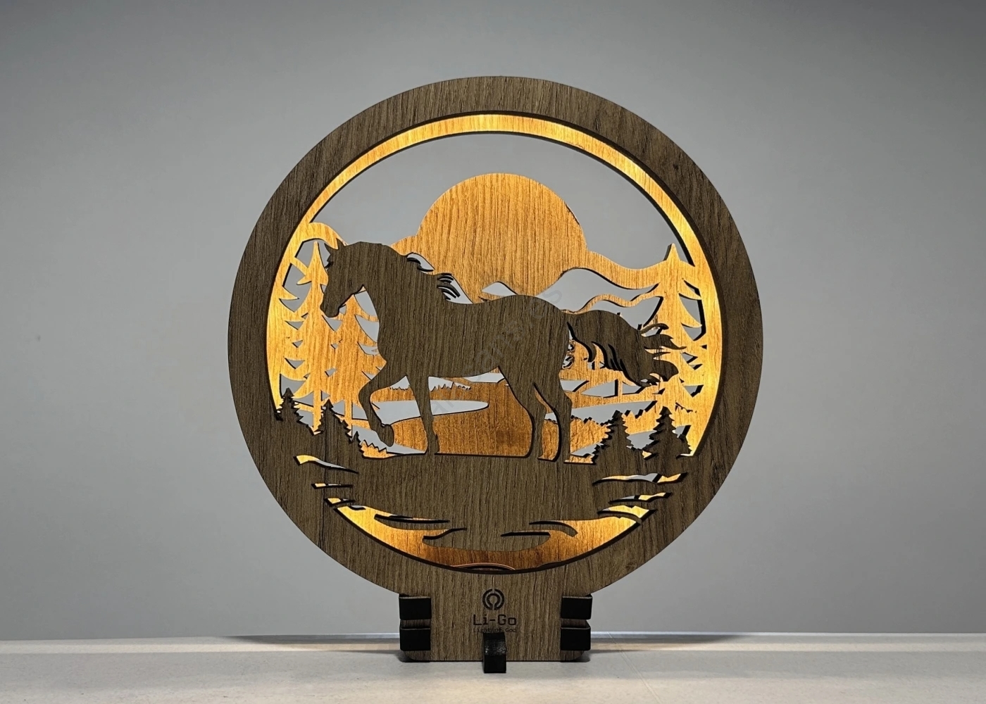 Li-Go 23598/DUB2 - Decoración de sobremesa LED regulable LED/12W/230V 20x22 cm roble/caballo