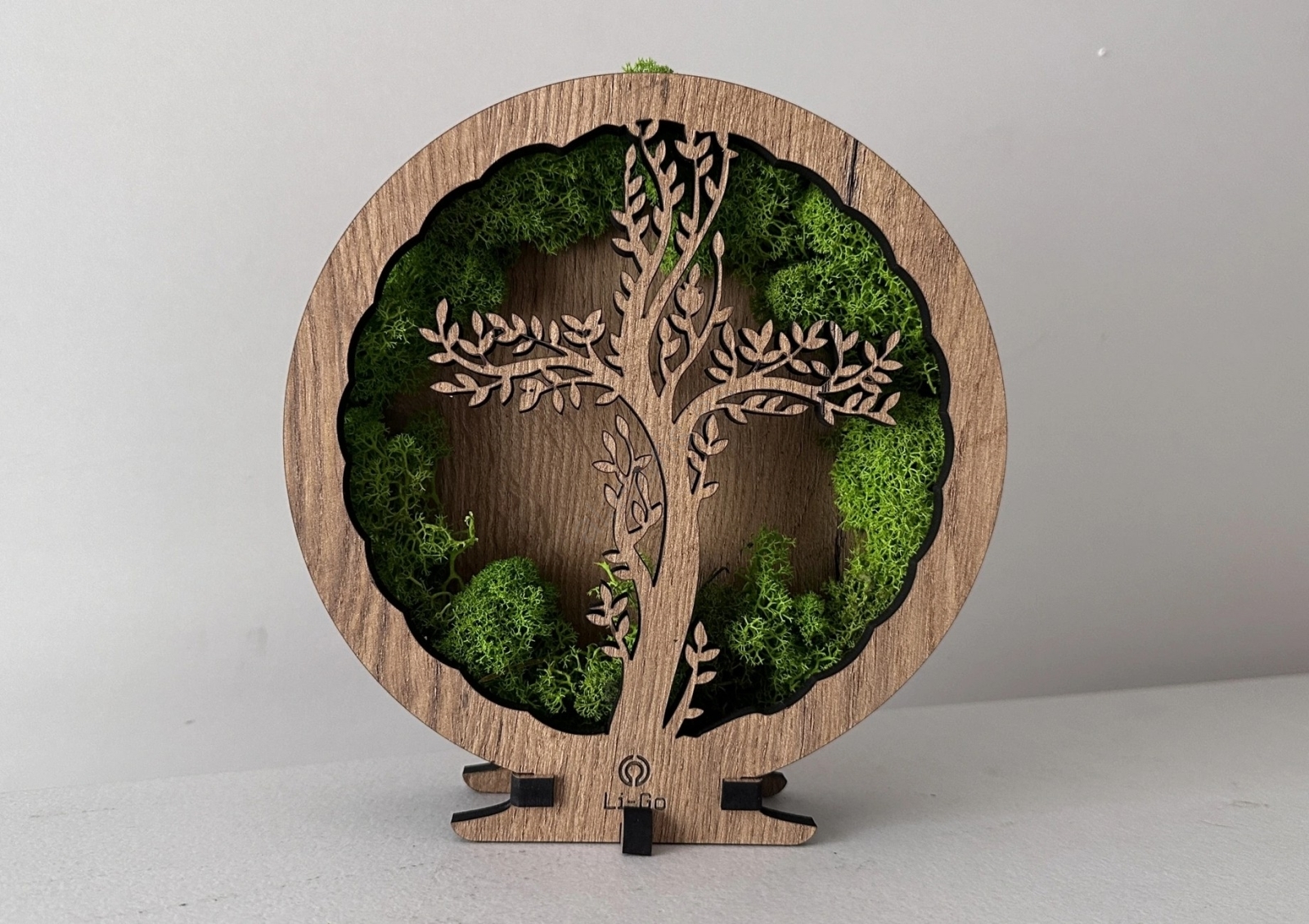 Li-Go 23622/DUB2 - Decoración de sobremesa LED regulable LED/12W/230V 20x22 cm roble/Cruz en musgo