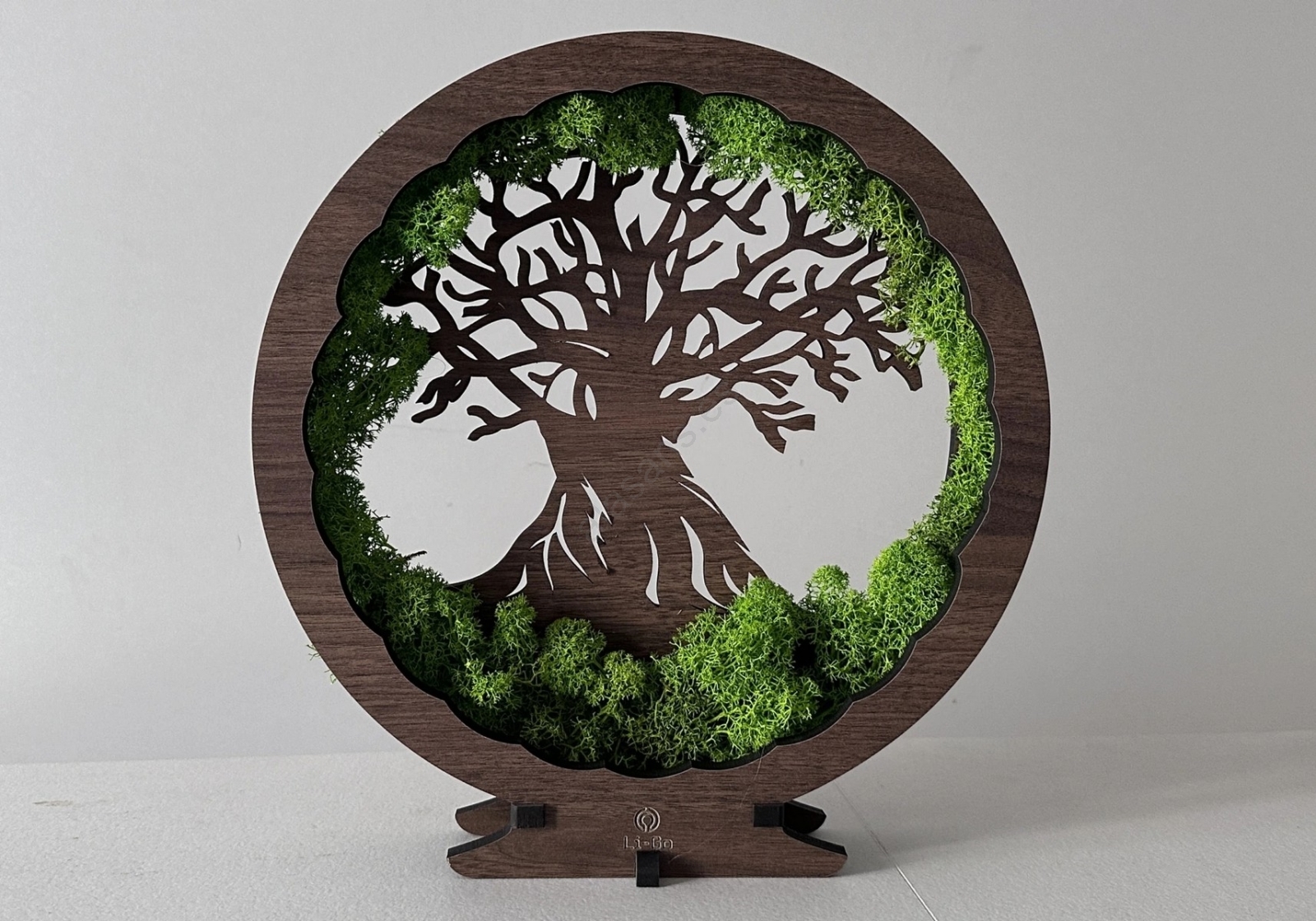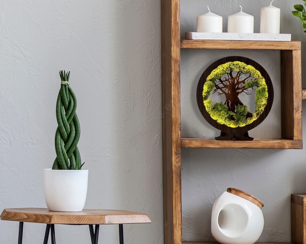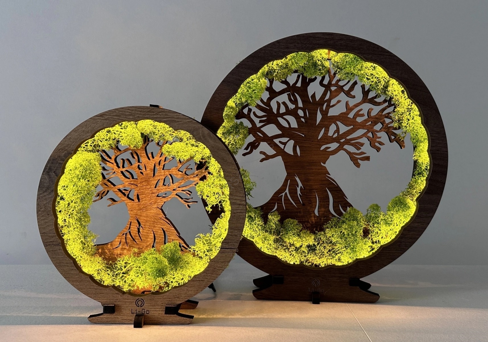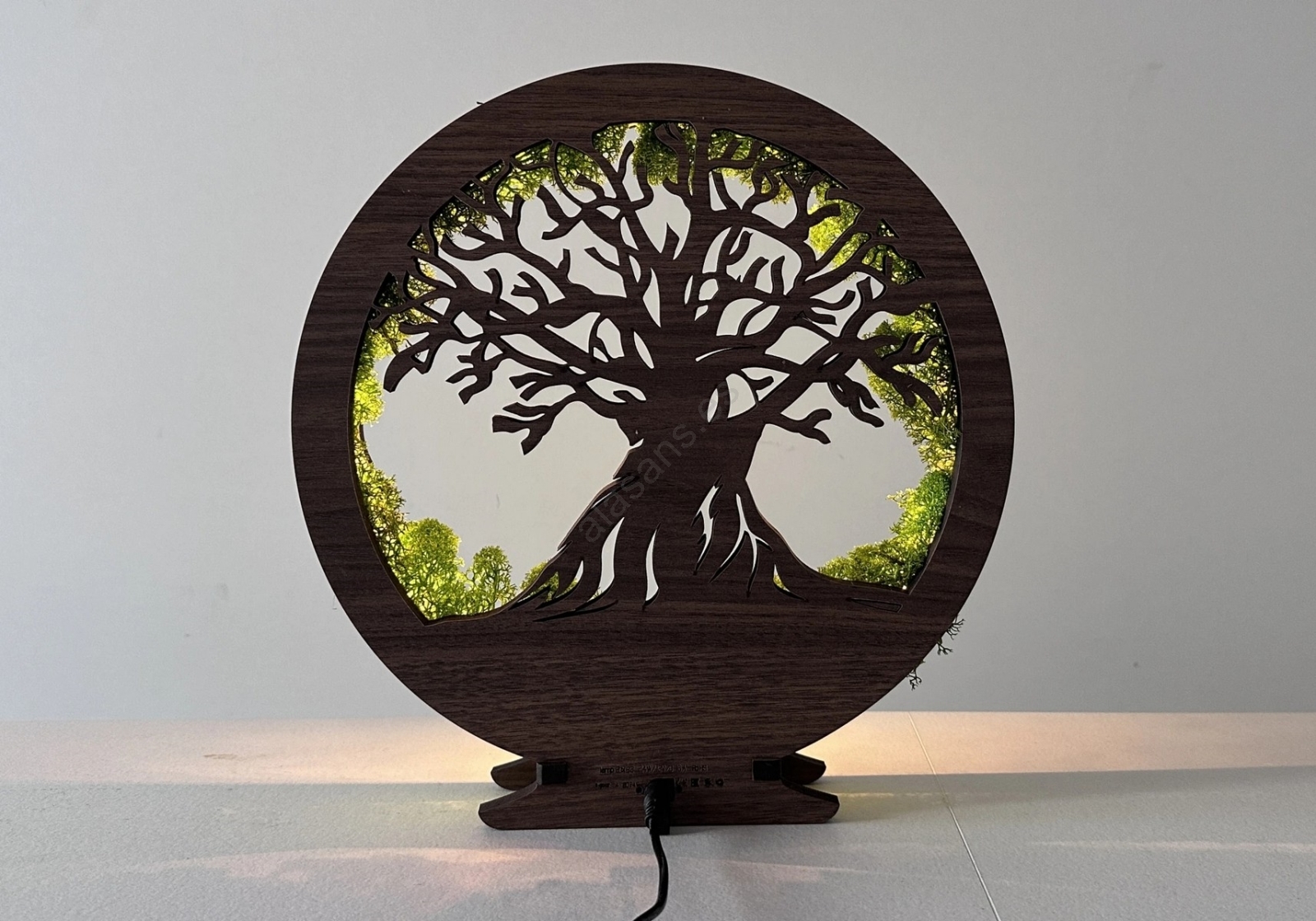 Li-Go 23631/DUB2 - LED Lámpara decorativa de sobremesa regulable LED/12W/230V 30x31 cm roble/musgo y árbol