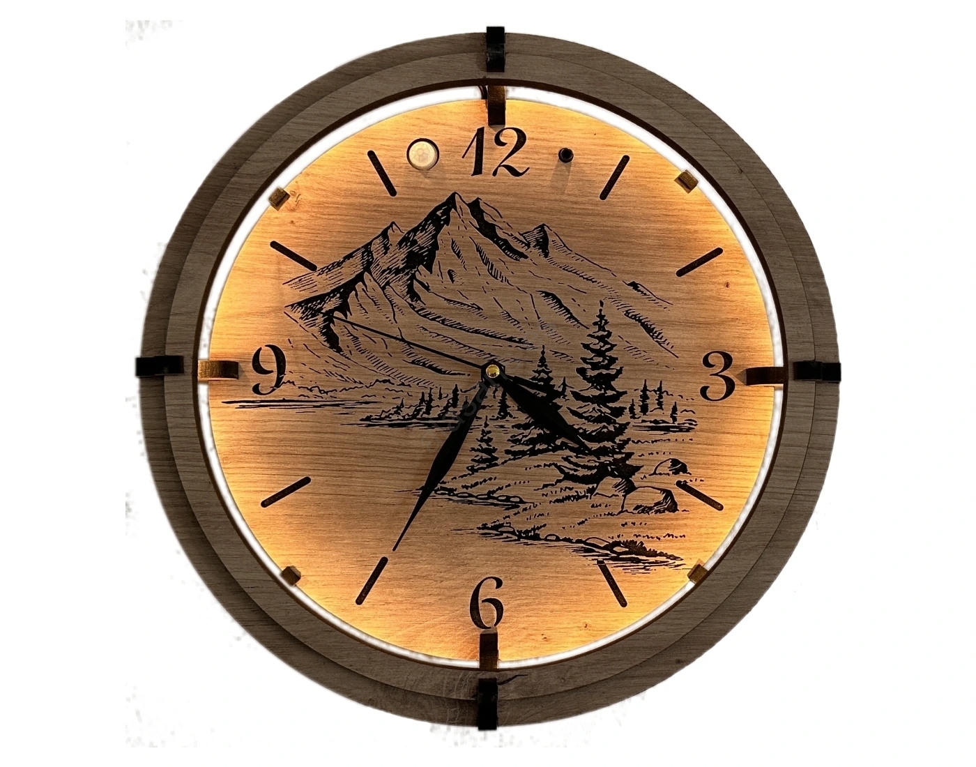 • Li-Go 23676/DUB5 - Reloj de pared 1x AA Ø 32 cm roble/Montañas
