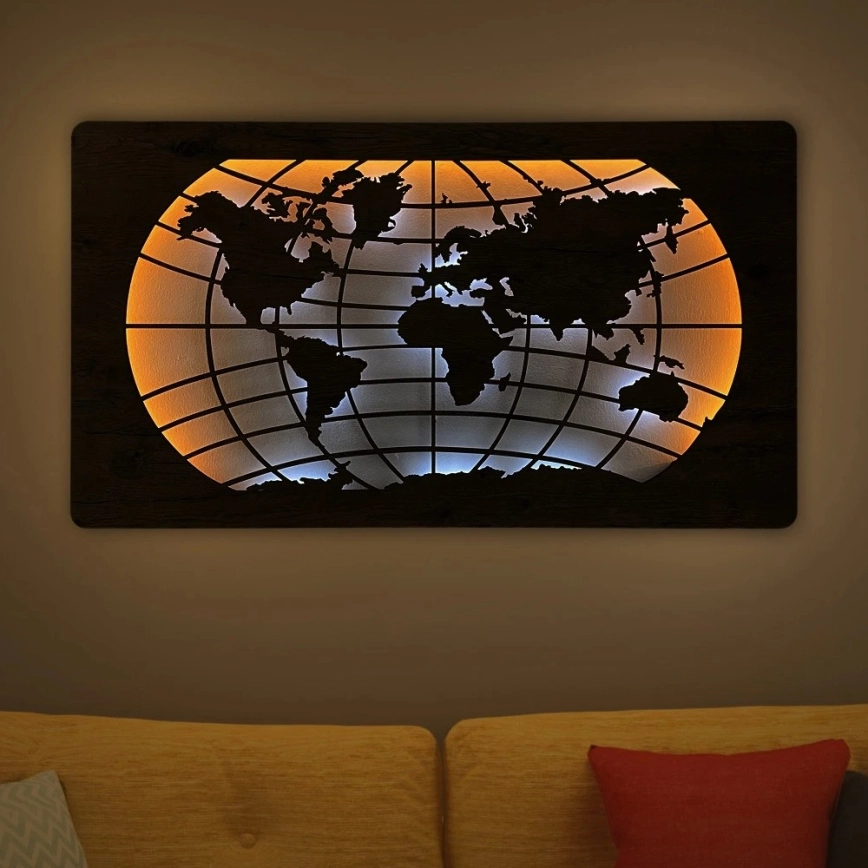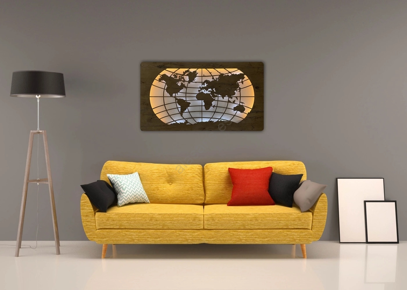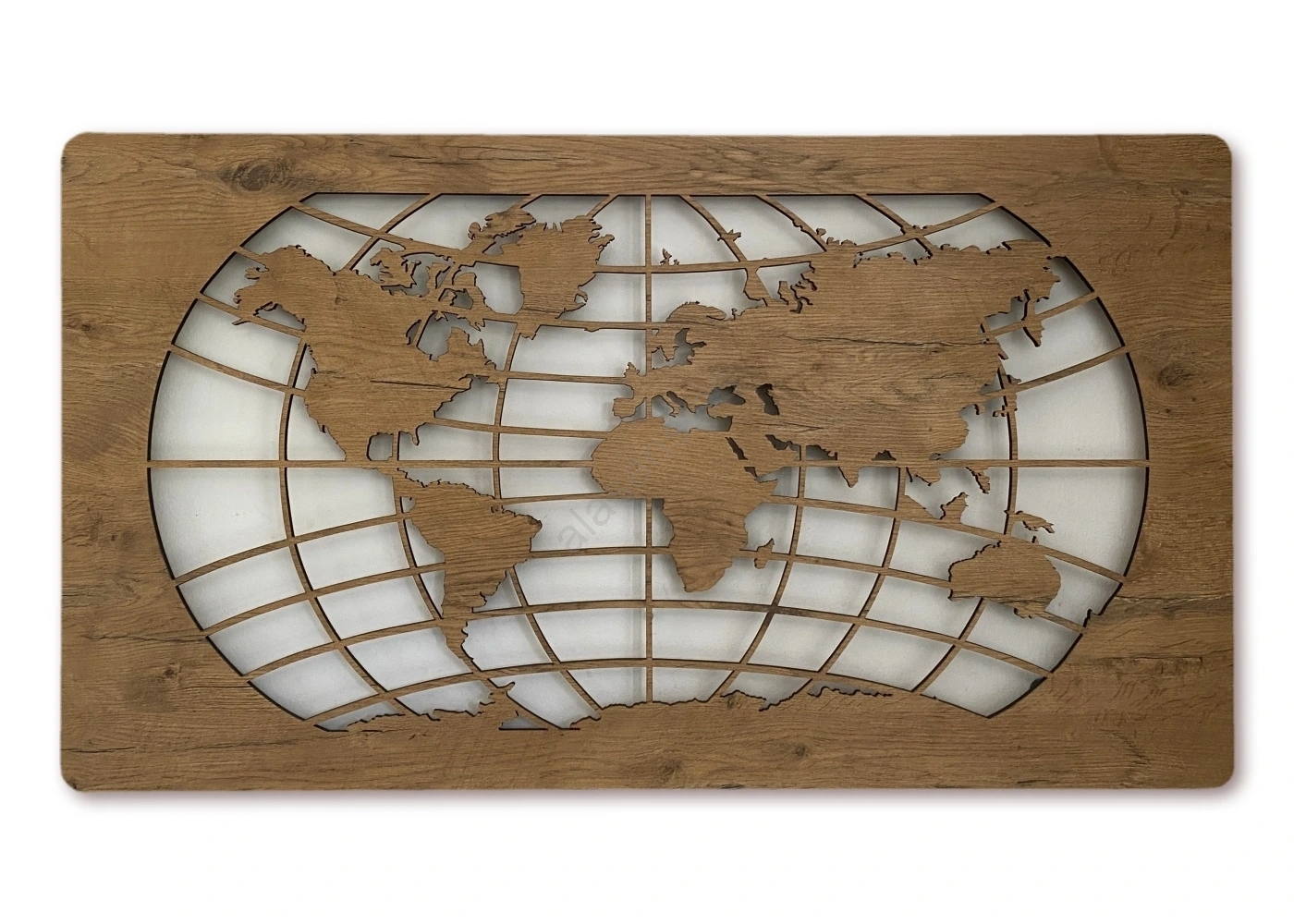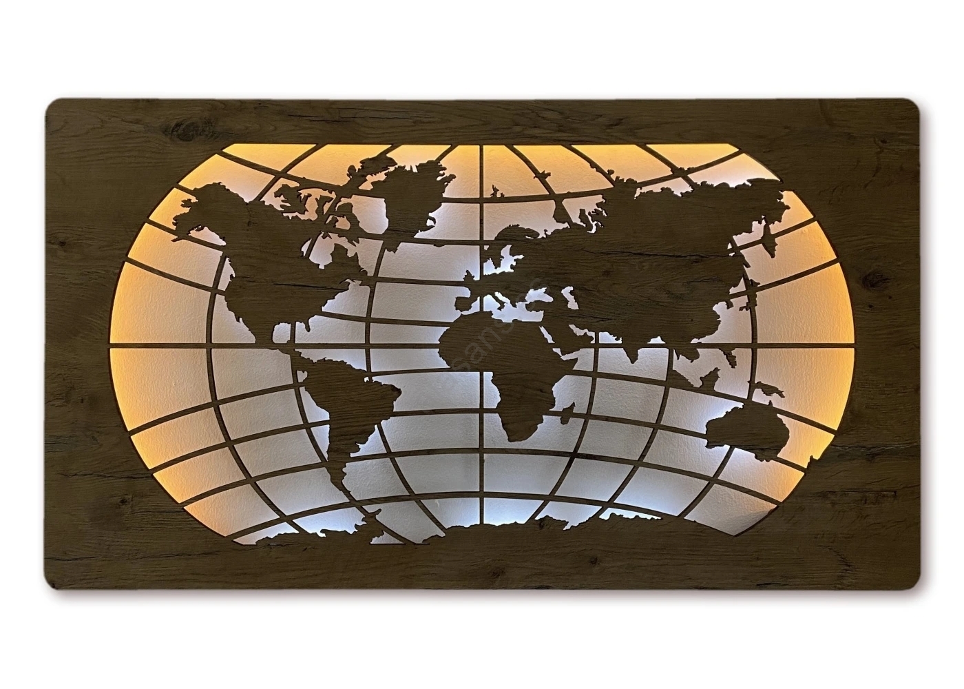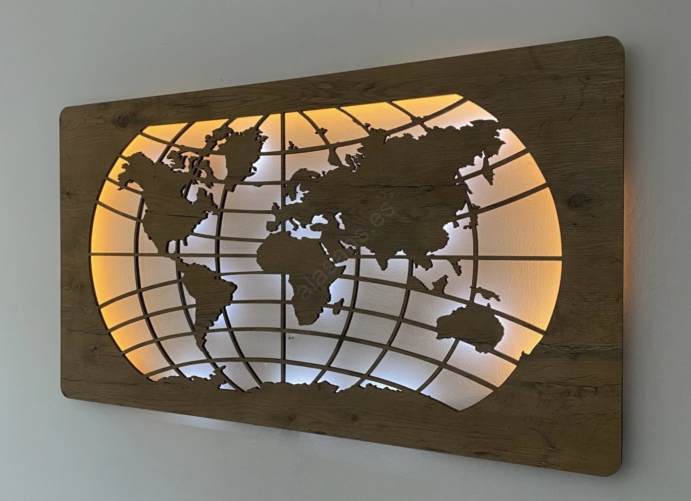Li-Go 4868/DUB2 - Decoración de pared LED regulable LED/24W/230V 110x60 cm roble/Mapa del mundo con paralelos