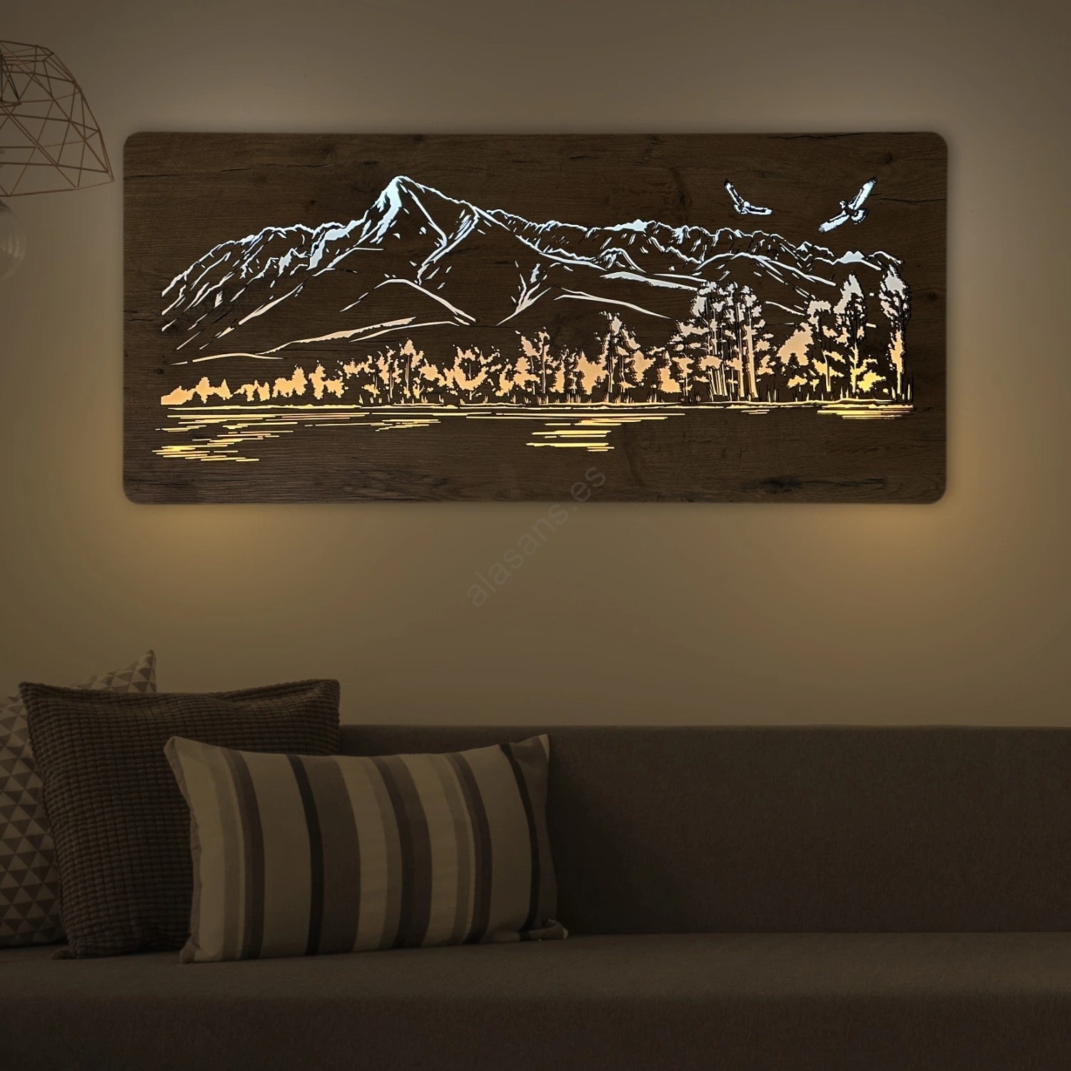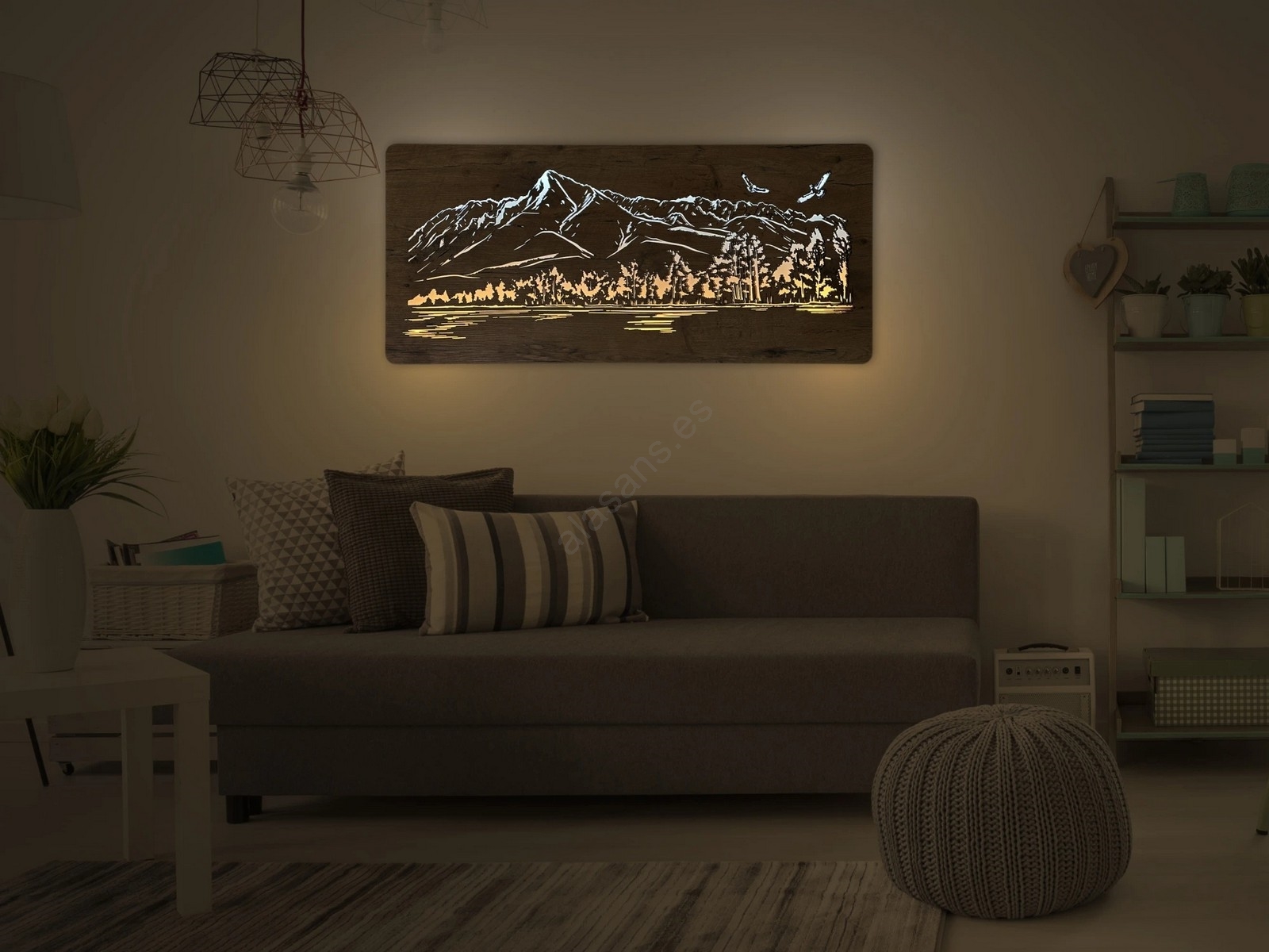 Li-Go 5589/A/DUB2 - Decoración mural LED regulable LED/10W/5V 30000 mAh 110x50 cm roble/Montañas con pájaros