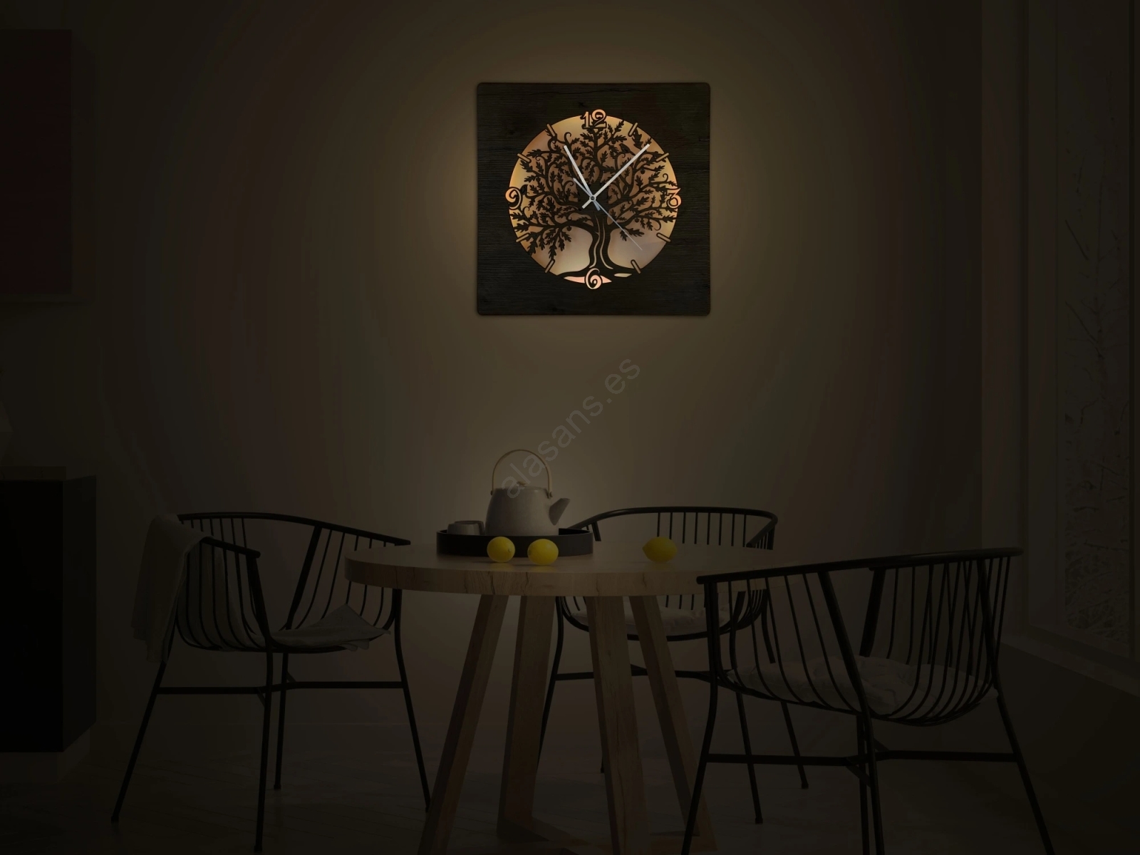 • Iluminación decorativa ideal, complementada por un reloj funcional.