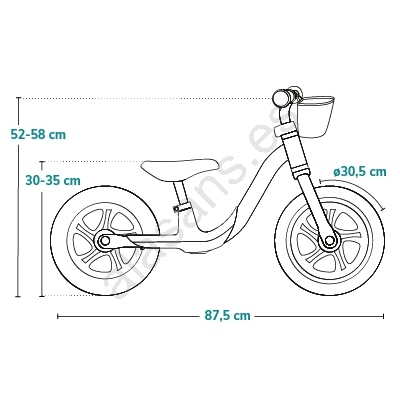 • Con sillín regulable en altura (30 - 35 cm) y manillar ajustable (52 - 58 cm), la bicicleta crece con su hijo.