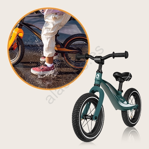 • Gracias a su ligera estructura de acero, la bicicleta sin pedales se maneja con gran facilidad.