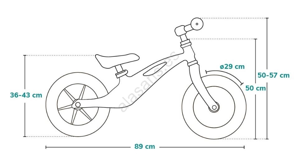 • El manillar regulable en altura (50 - 57 cm) y el sillín (36 - 43 cm) garantizan una adaptación completa para niños de hasta 6 años.
