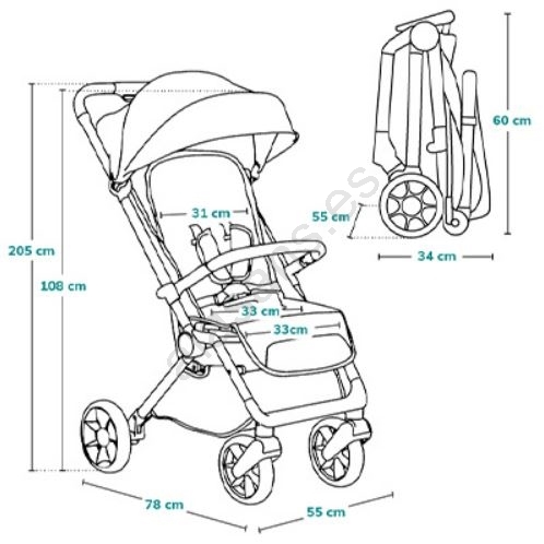 • Sistema de plegado automático - al pulsar un botón el cochecito se pliega solo.