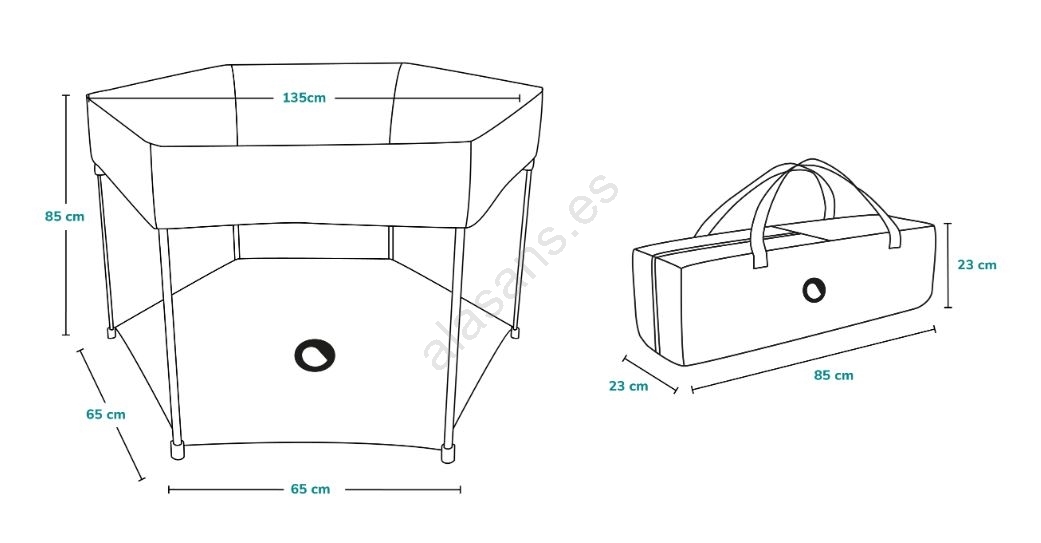 • El parque se entrega con una bolsa de transporte con asa práctica para facilitar su traslado.