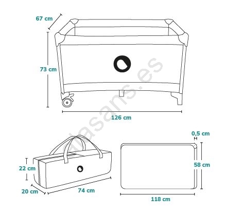 • Sus dimensiones compactas una vez plegada y la bolsa de transporte incluida con asas facilitan llevar la cuna siempre contigo.
