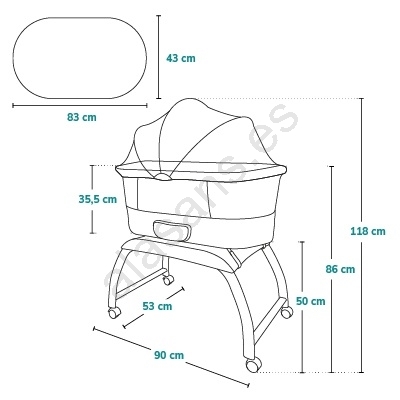 • Las cuatro ruedas giratorias facilitan el desplazamiento de la cuna.