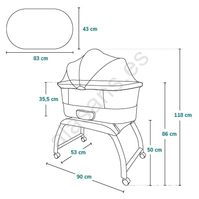 • Cuatro ruedas giratorias facilitan el desplazamiento de la cuna.