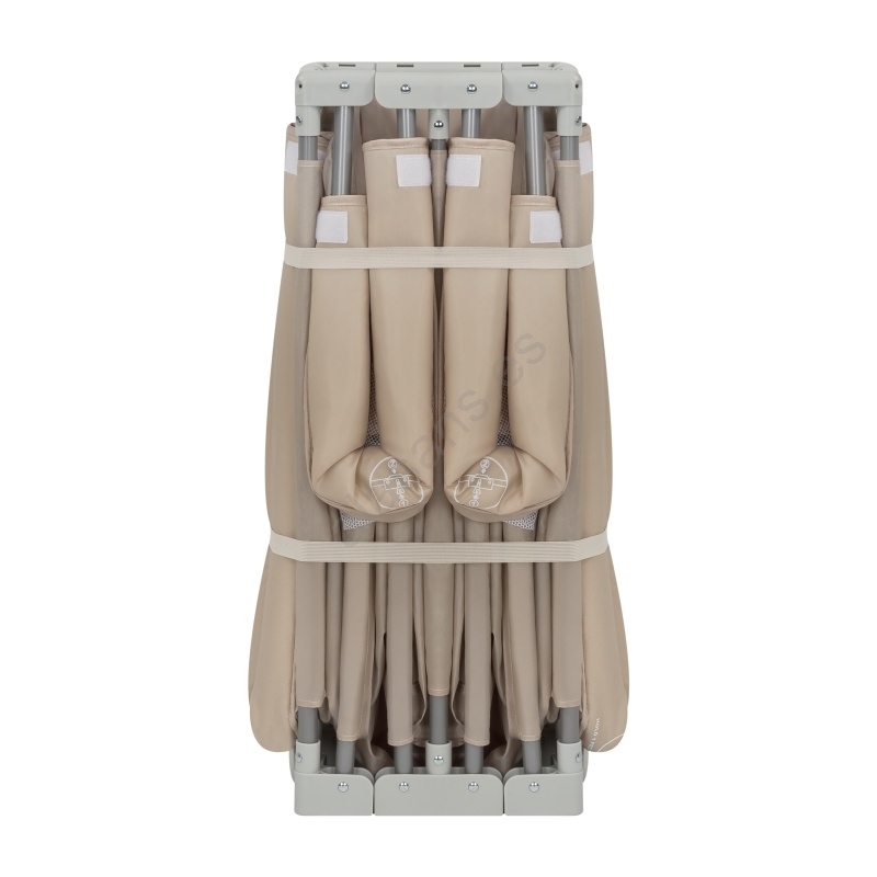 • El parque está equipado con un sencillo mecanismo plegable que permite plegarlo rápidamente hasta alcanzar unas dimensiones compactas sin necesidad de herramientas.