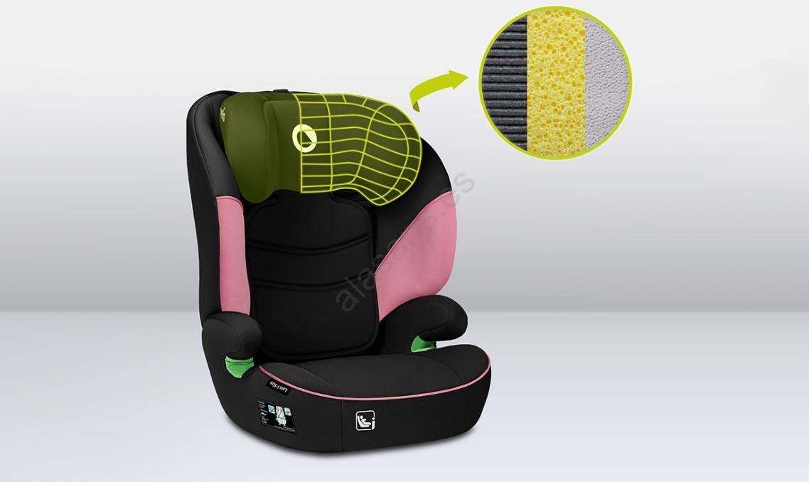 Lionelo - Silla de coche LARS i-Size 100-150 cm negro/rosa