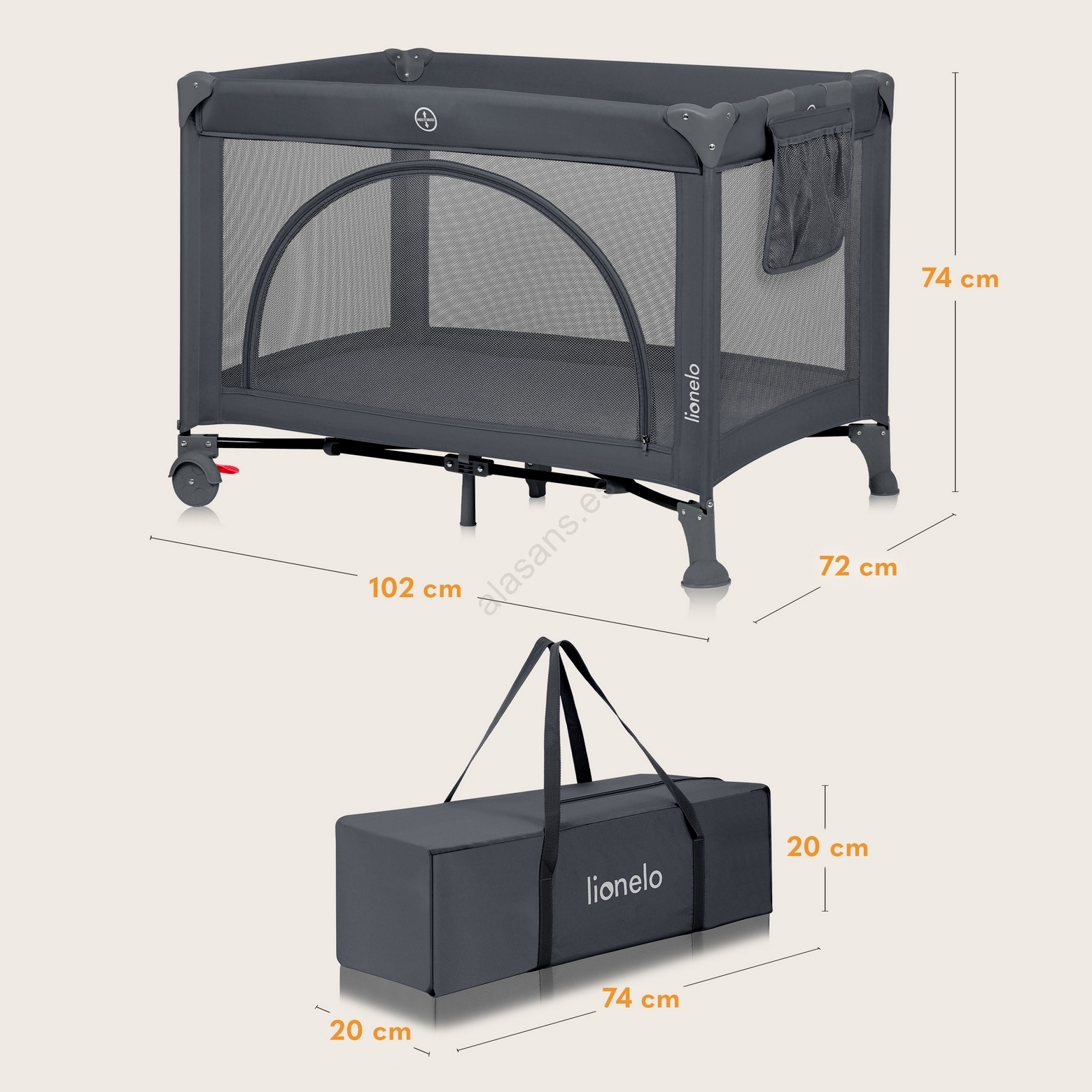 Lionelo - Cuna de viaje LAURA Gris Hormigón