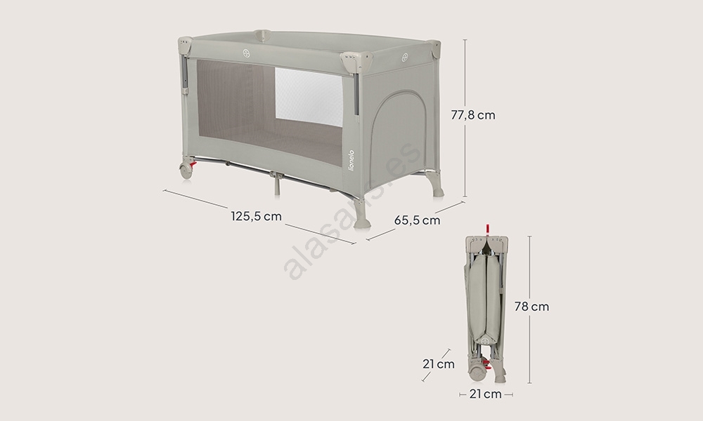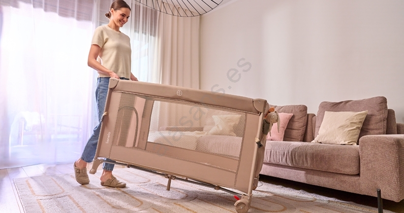 • Sus dimensiones compactas una vez plegada y la bolsa de transporte incluida con asas permiten llevar la cuna siempre contigo.