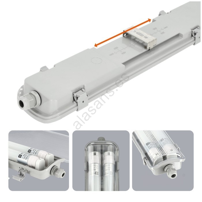 • Luminaria técnica LED para tubos T8, 2x G13 / 18 W / 230 V / 6500 K / IP65 / 127 cm