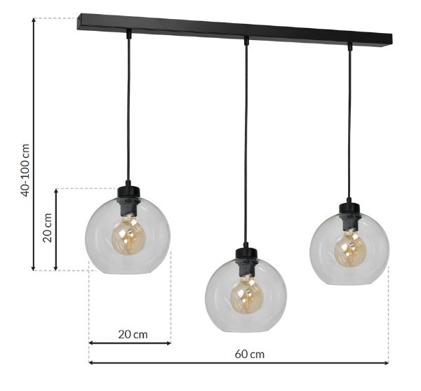 Lámpara Colgante SOFIA 3xE27/60W/230V transparente