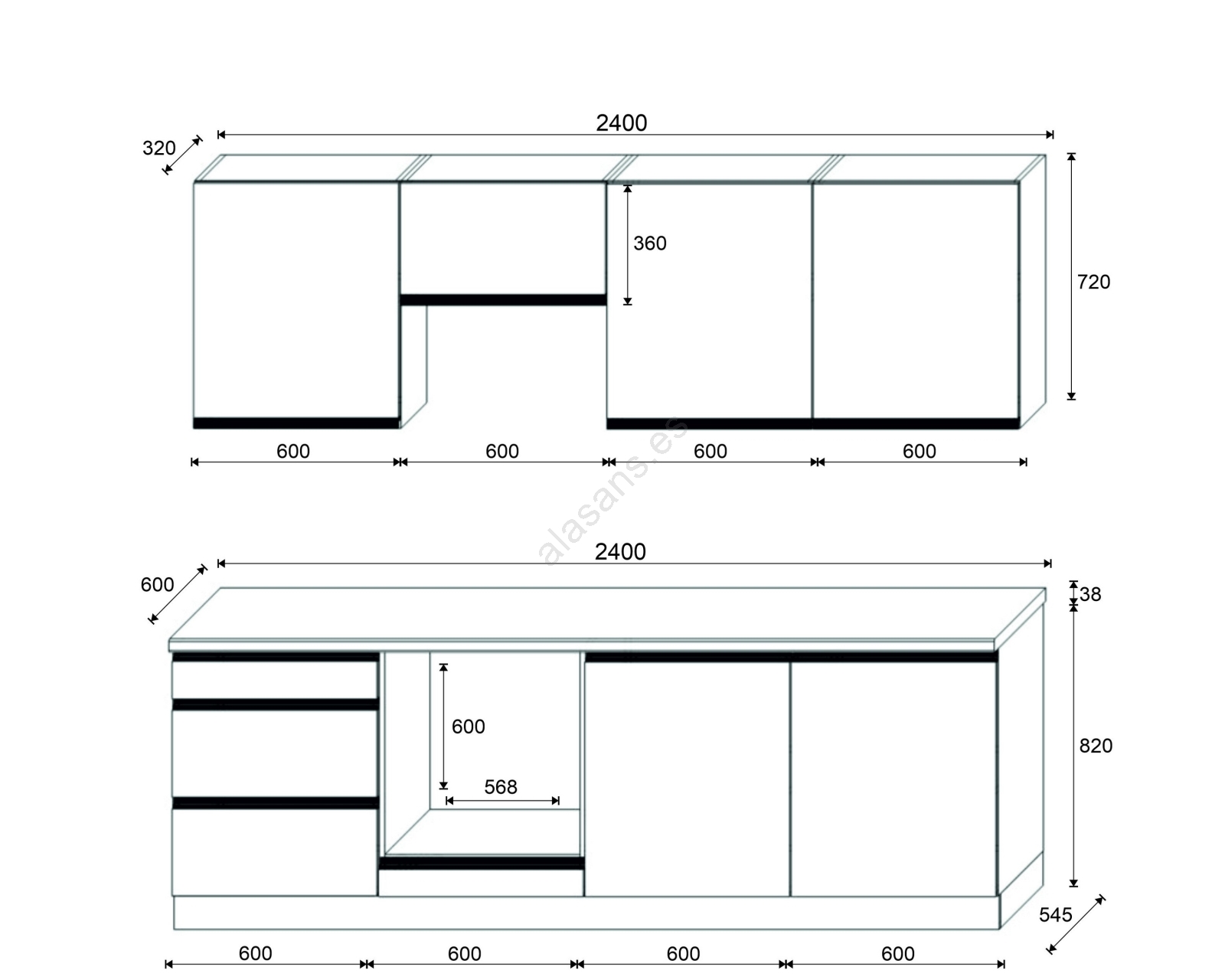 • La disposición de los armarios es modular, puede adaptar la cocina según sus propias preferencias.