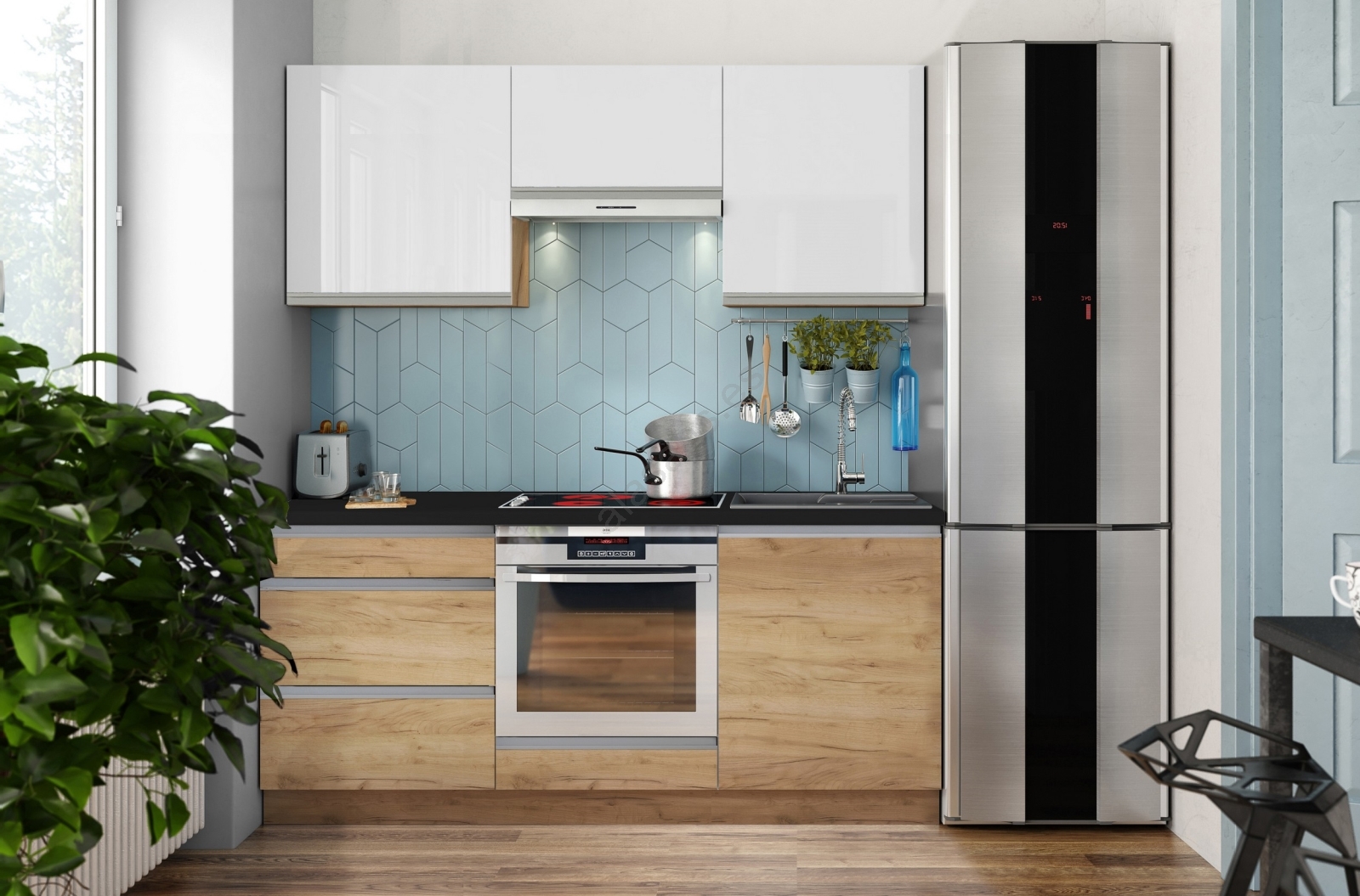 Mueble de cocina MARINA 180 cm, roble craft/blanco brillo