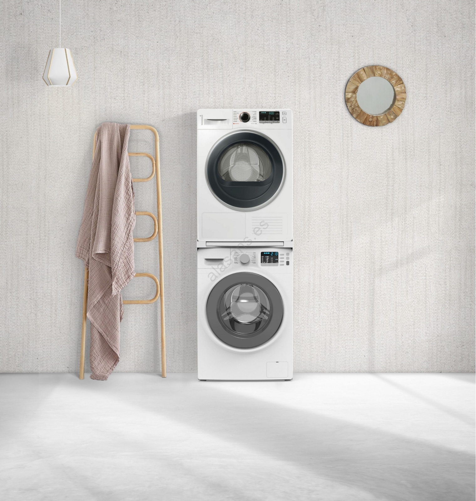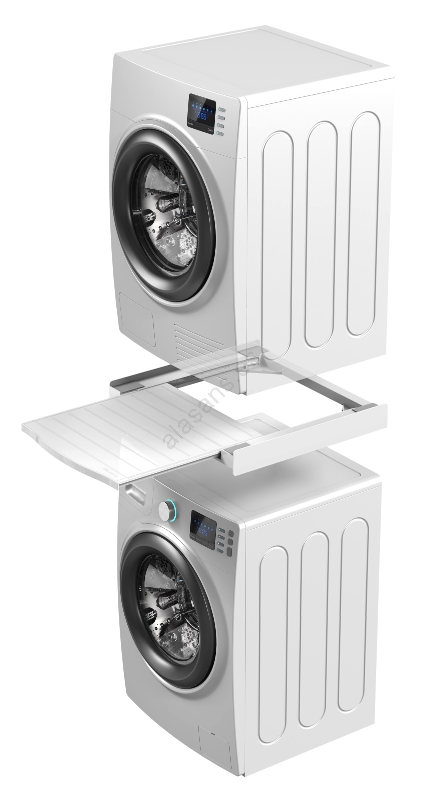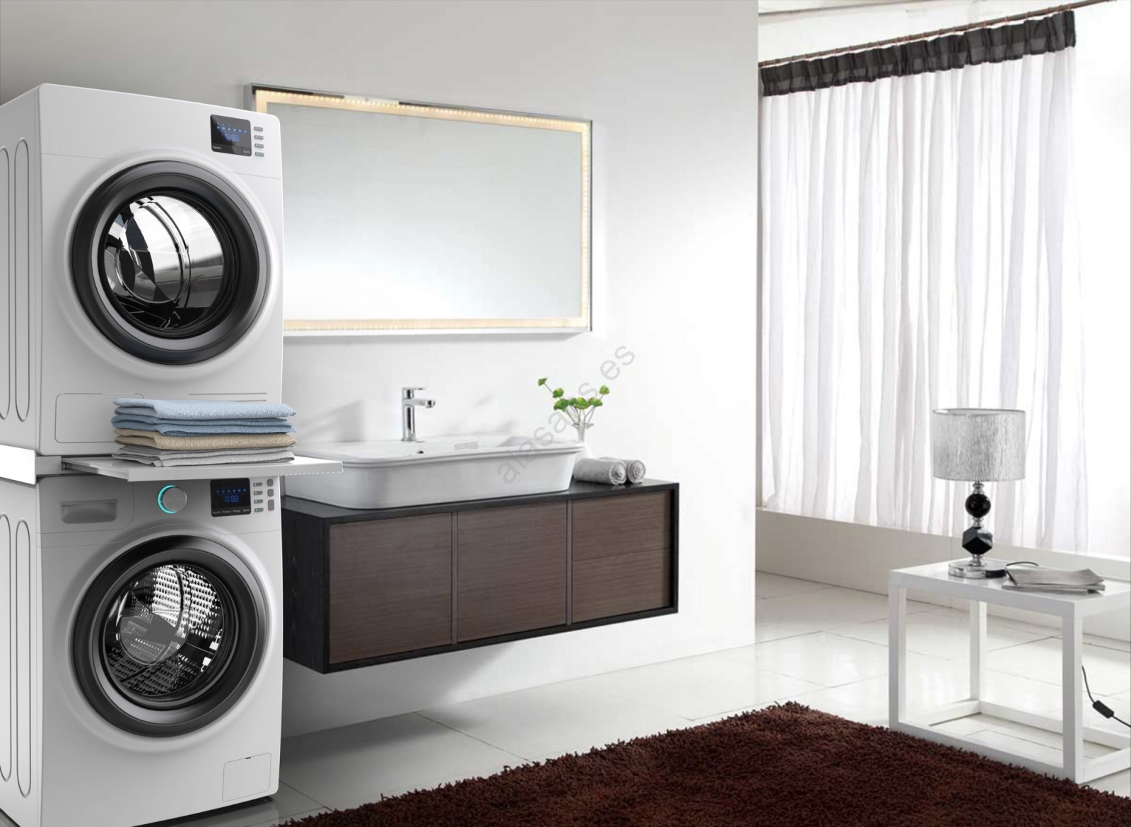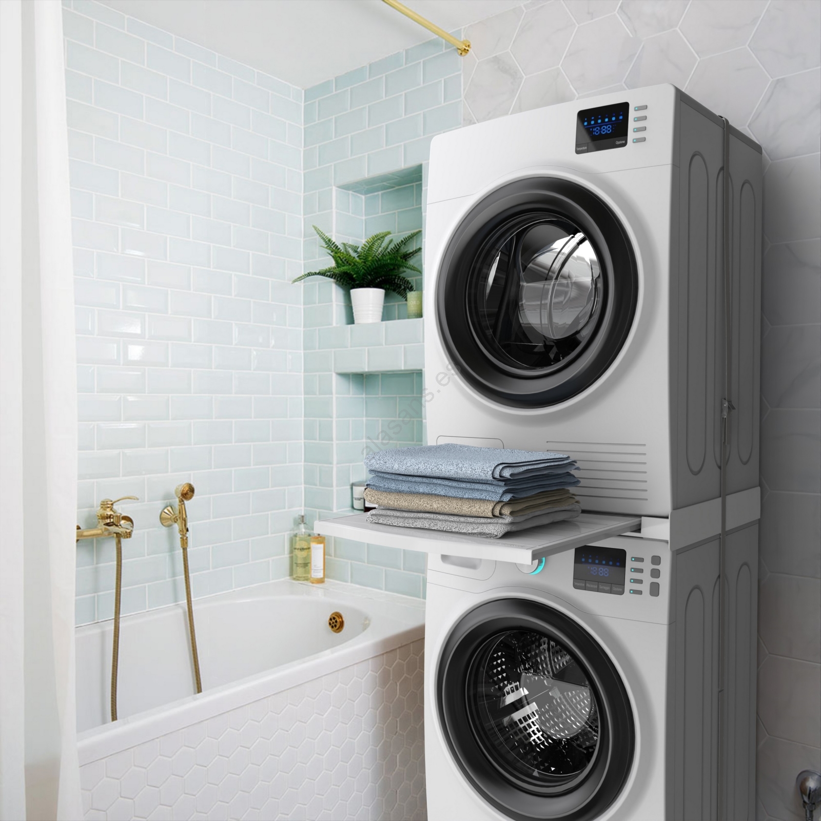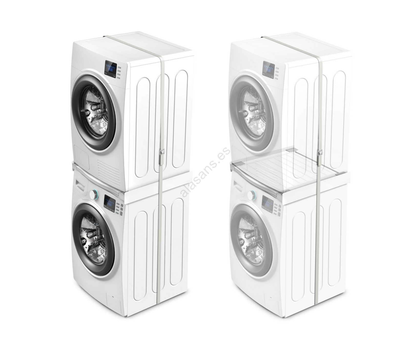 • Juego de unión universal para lavadoras con profundidad de 45–60 cm y secadoras de carga frontal.