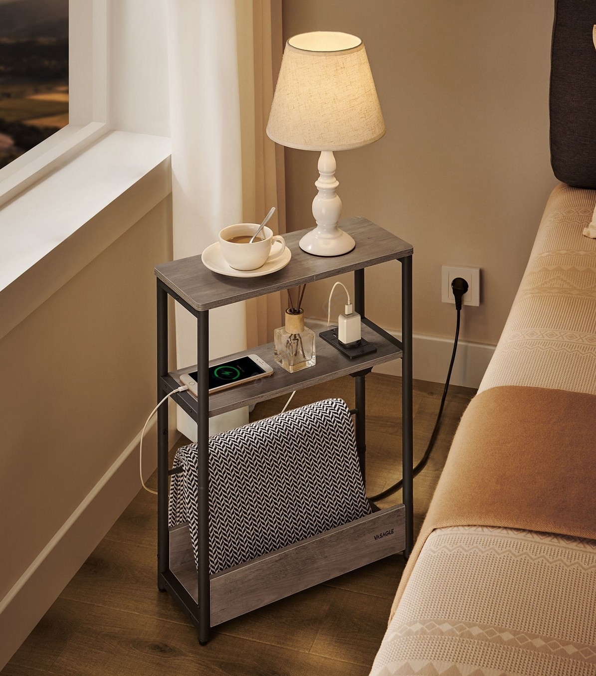 • Mesa auxiliar ROD con enchufe integrado y puertos USB, marrón/negro