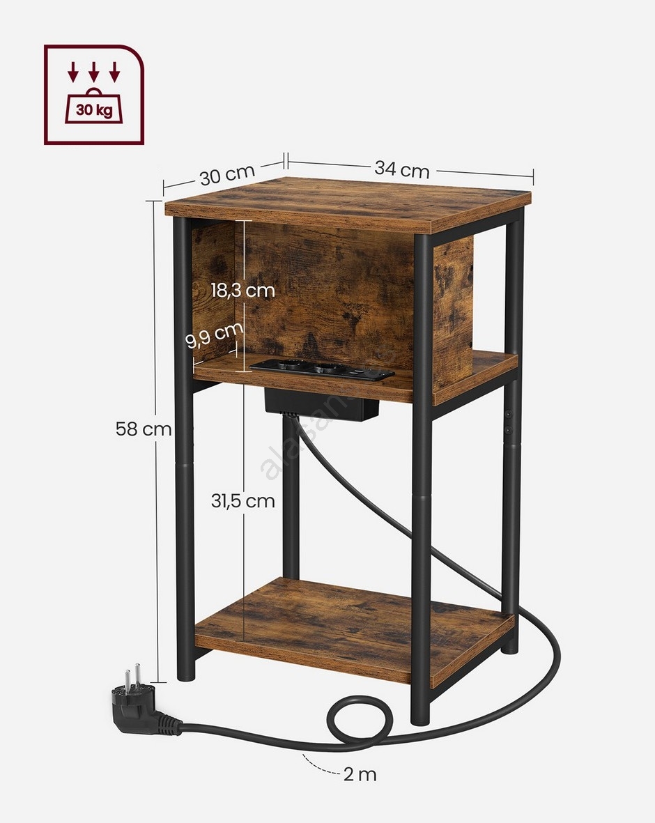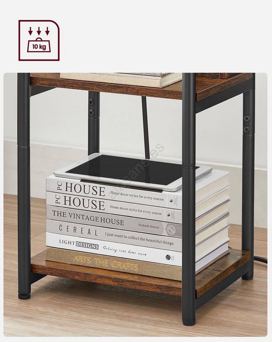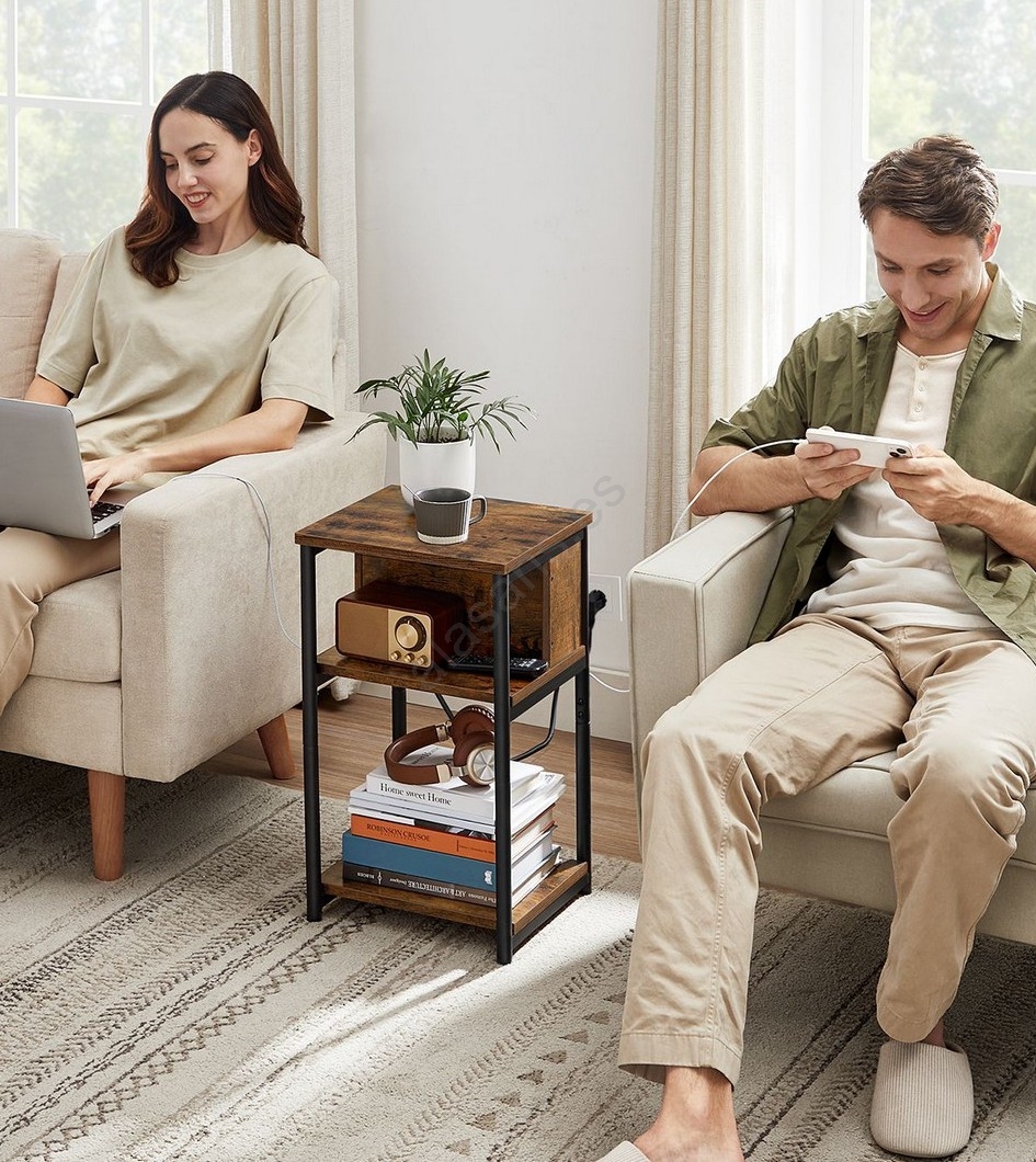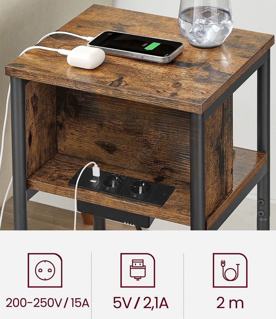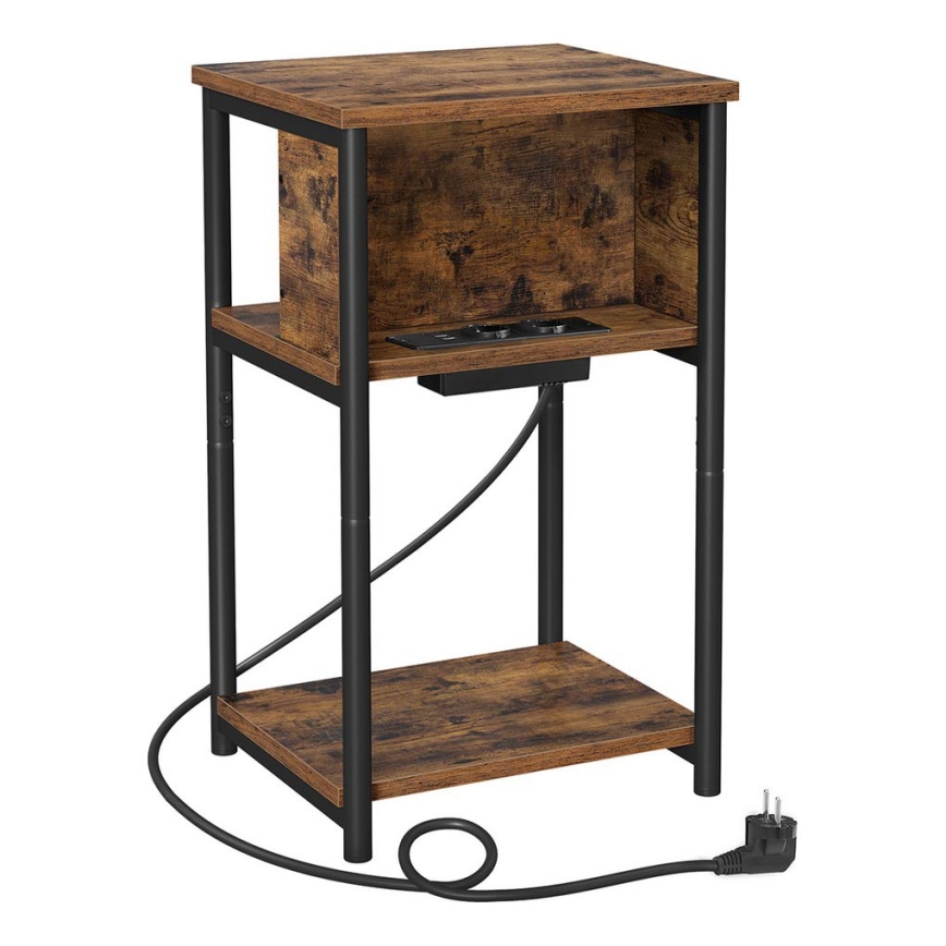 Mesa auxiliar ROD con enchufes integrados y puertos USB, marrón/negro