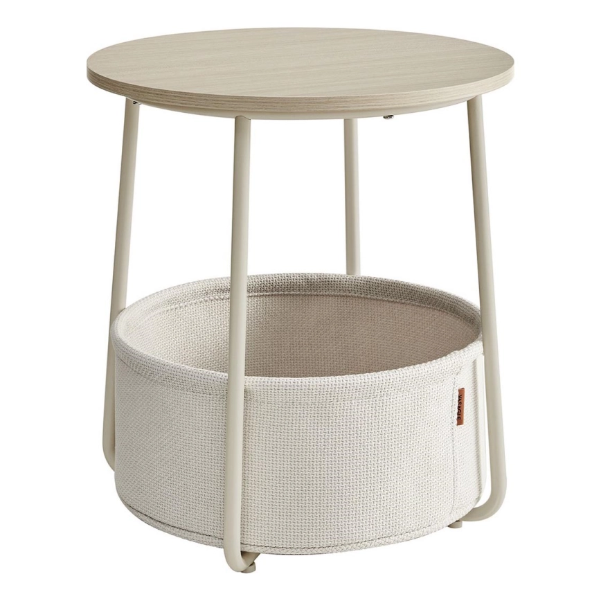 • Mesa auxiliar NOIRA con enchufes integrados y puertos USB, beige/blanco